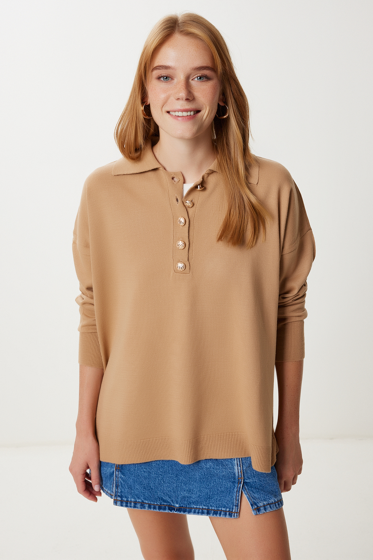 Kadın Açık Mavi Polo Yaka Basic Kazak bv00094 Kadın Açık Mavi Polo Yaka Basic Kazak bv00094 Standart