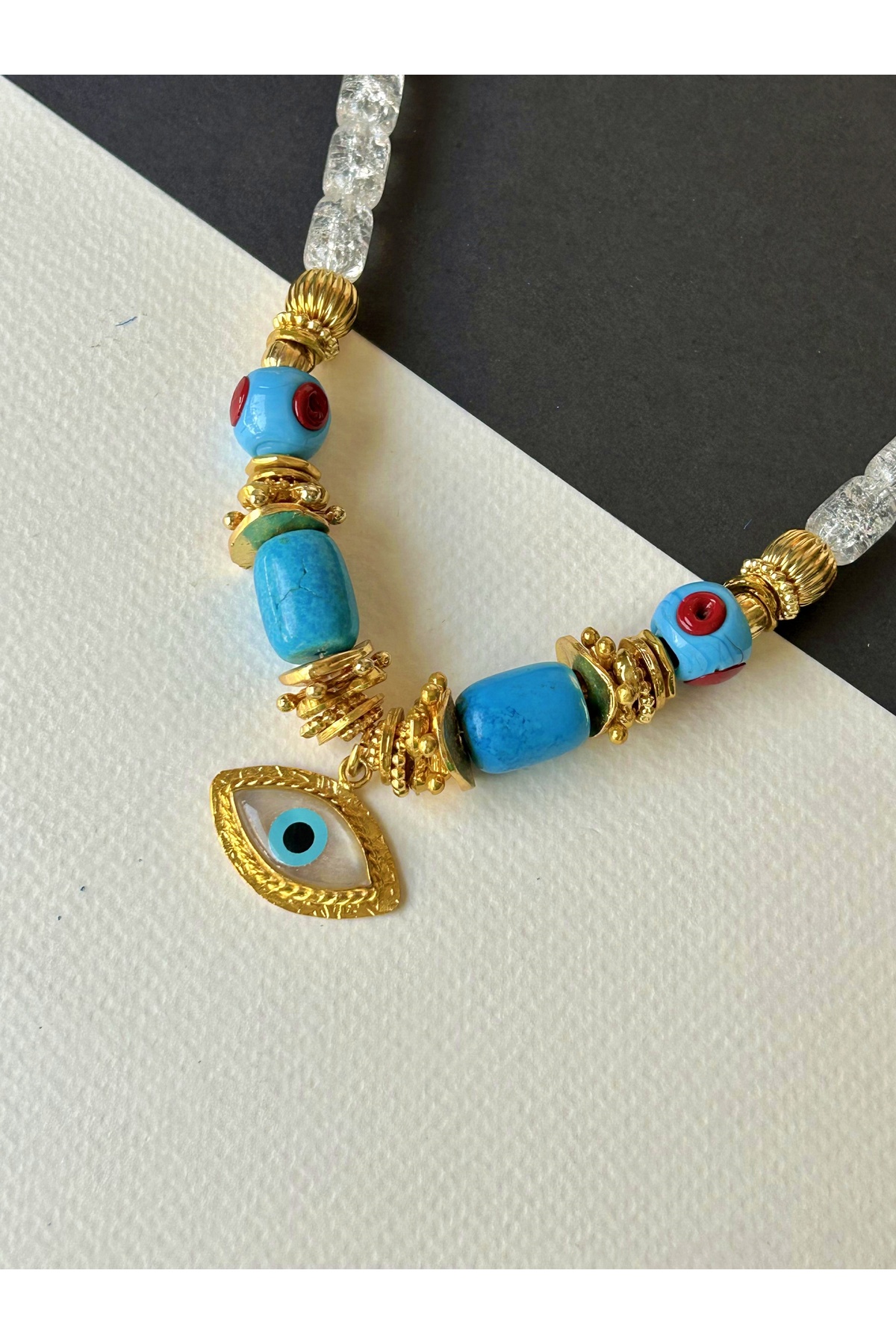 Ametist Amazonit Doğal Taş Kolye / Altın Kaplama Detaylı Ametist Amazonit Doğal Taş Kolye / Altın Kaplama Detaylı KLY00128 تک سایز