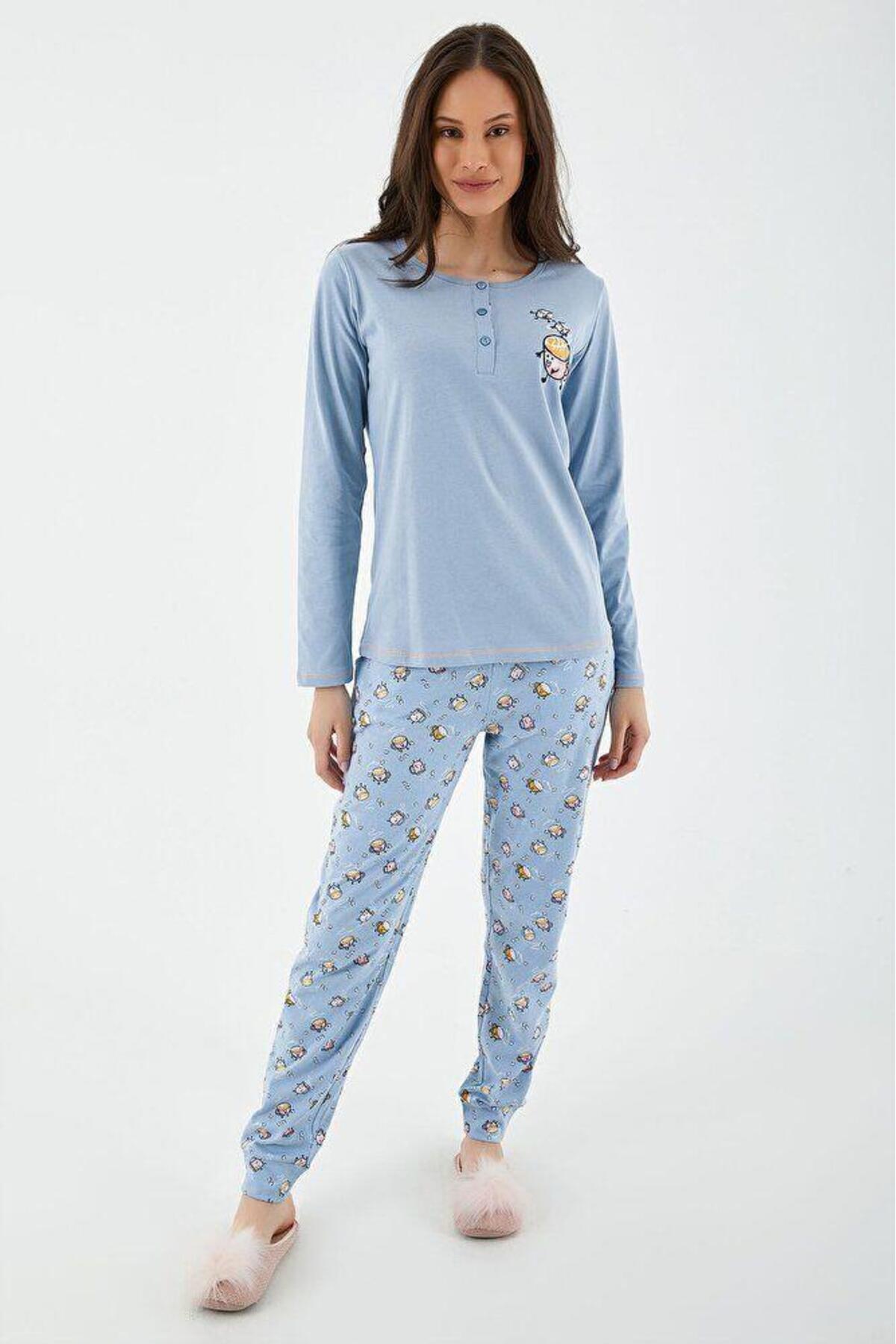 Have A Happy Day Lacivert Kadın Uzun Kol Pijama Takım Have A Happy Day Lacivert Kadın Uzun Kol Pijama Takım AR2661-S XL