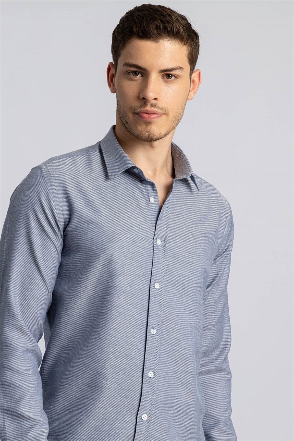 Slim Fit Uzun Kollu Hakim Yaka Pamuklu Kolay Ütü Çizgili Erkek Lacivert Gömlek Slim Fit Uzun Kollu Hakim Yaka Pamuklu Kolay Ütü Çizgili Erkek Lacivert Gömlek DR220080-207 2XL