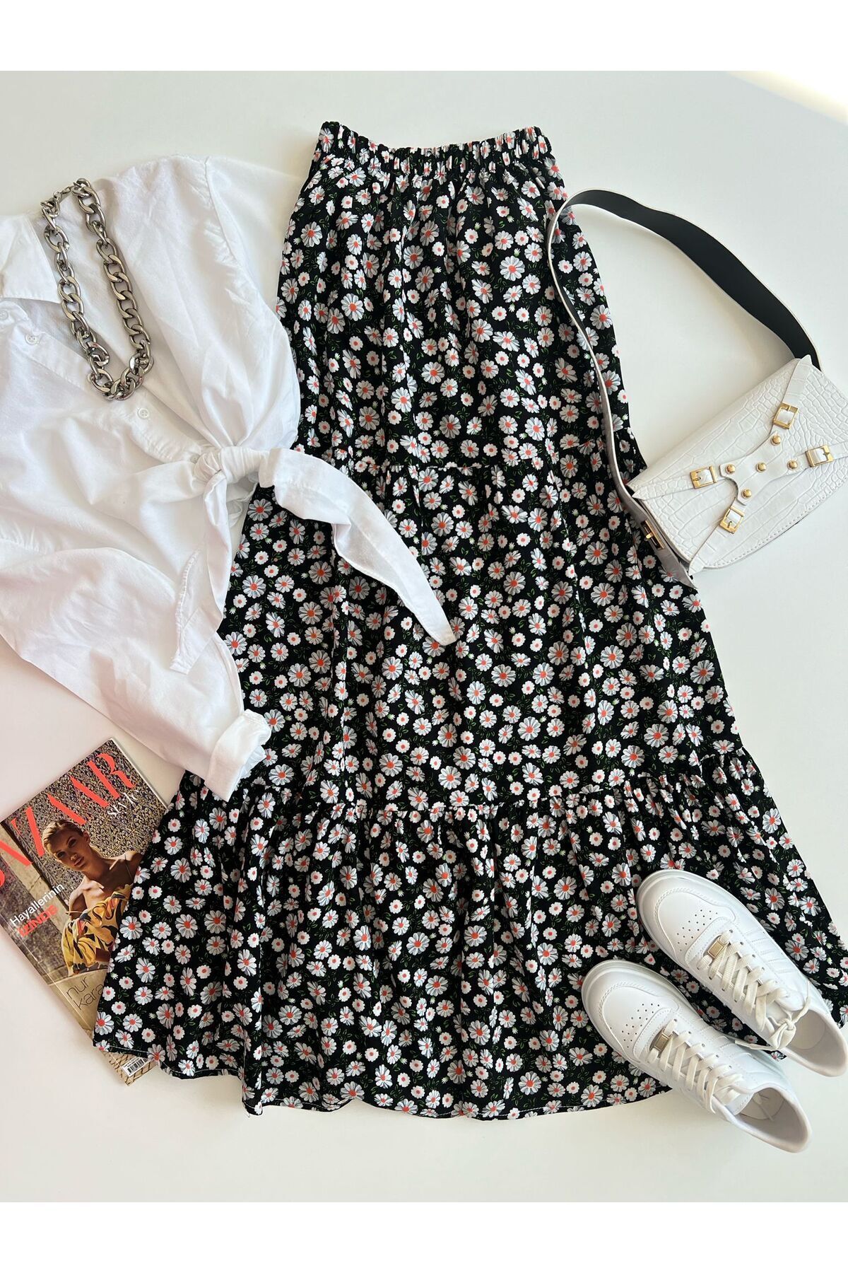Renkli Çiçekli Viskon Etek Renkli Çiçekli Viskon Etek NF2187 XXLSTD