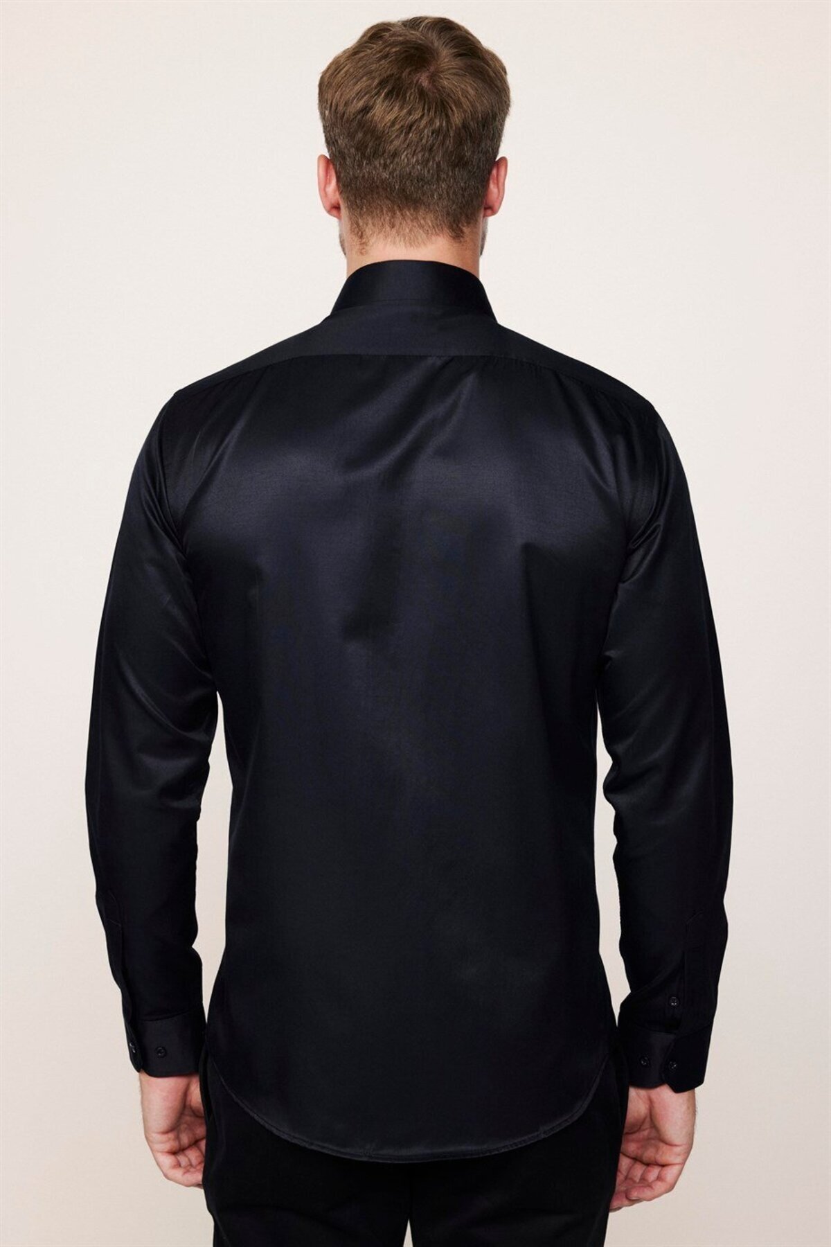 Erkek Modern Slim Fit Düz Saten Pamuklu Lacivert Gömlek Erkek Modern Slim Fit Düz Saten Pamuklu Lacivert Gömlek MD210001-142 2XL