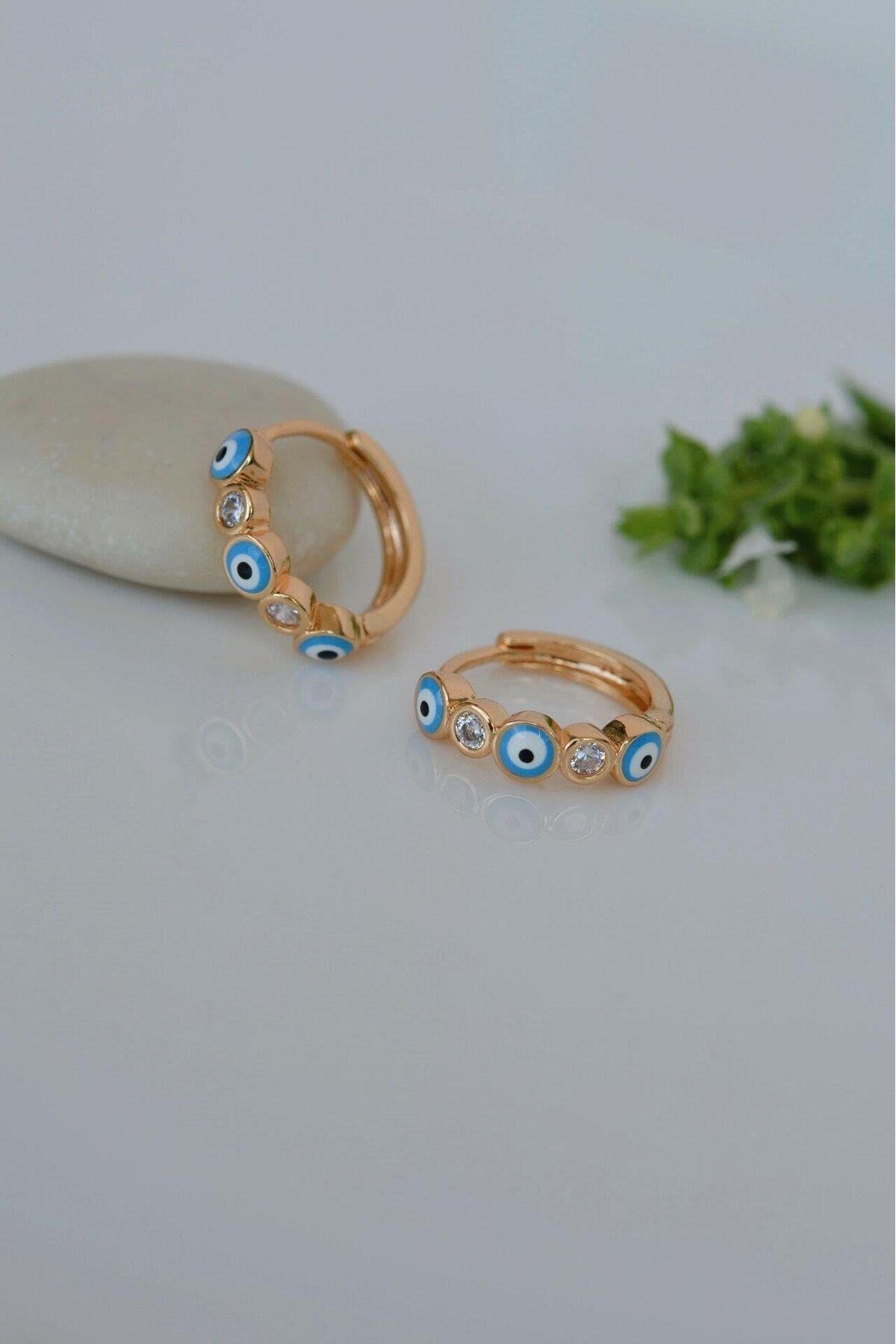 Koyu Mavi Nazar Zirkon Göz Halka Küpe Koyu Mavi Nazar Zirkon Göz Halka Küpe HKMNTYZ5 تک سایز