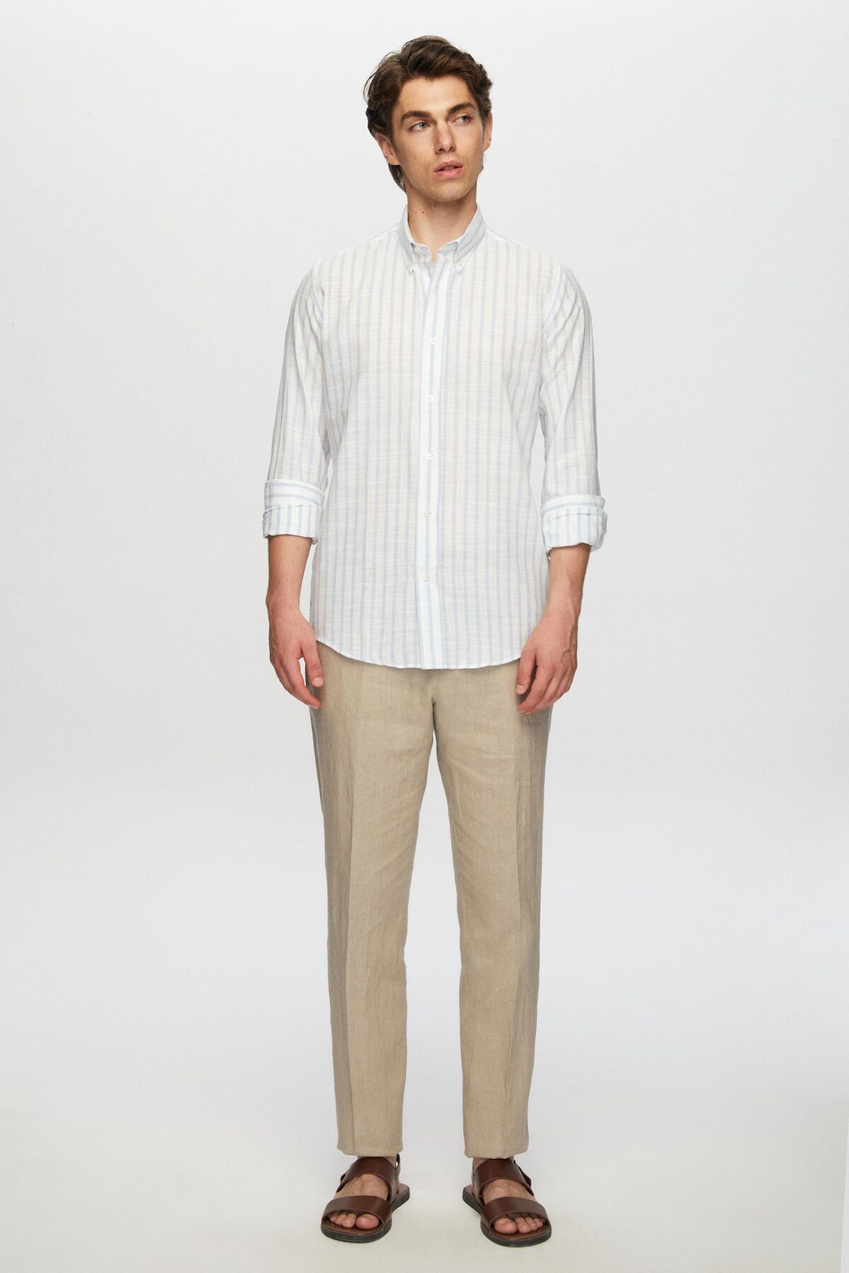 Ds Damat Slim Fit Açık Mavi Çizgili Düğmeli Yaka %100 Pamuk Flamlı Yazlık Keten Görünümlü Gömlek Ds Damat Slim Fit Açık Mavi Çizgili Düğmeli Yaka %100 Pamuk Flamlı Yazlık Keten Görünümlü Gömlek 0HC02ORT06265 2XL