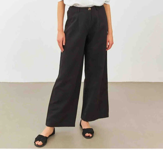 Siyah Keten Yüksek Bel Wide Leg Pantolon Siyah Keten Yüksek Bel Wide Leg Pantolon SPN23-027 44