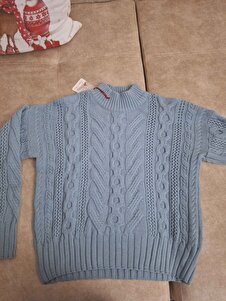 Mavi Kadın Saç Örgülü Yarım Balıkçı Yaka Yün Kazak Mavi Kadın Saç Örgülü Yarım Balıkçı Yaka Yün Kazak TRIST-6143 M