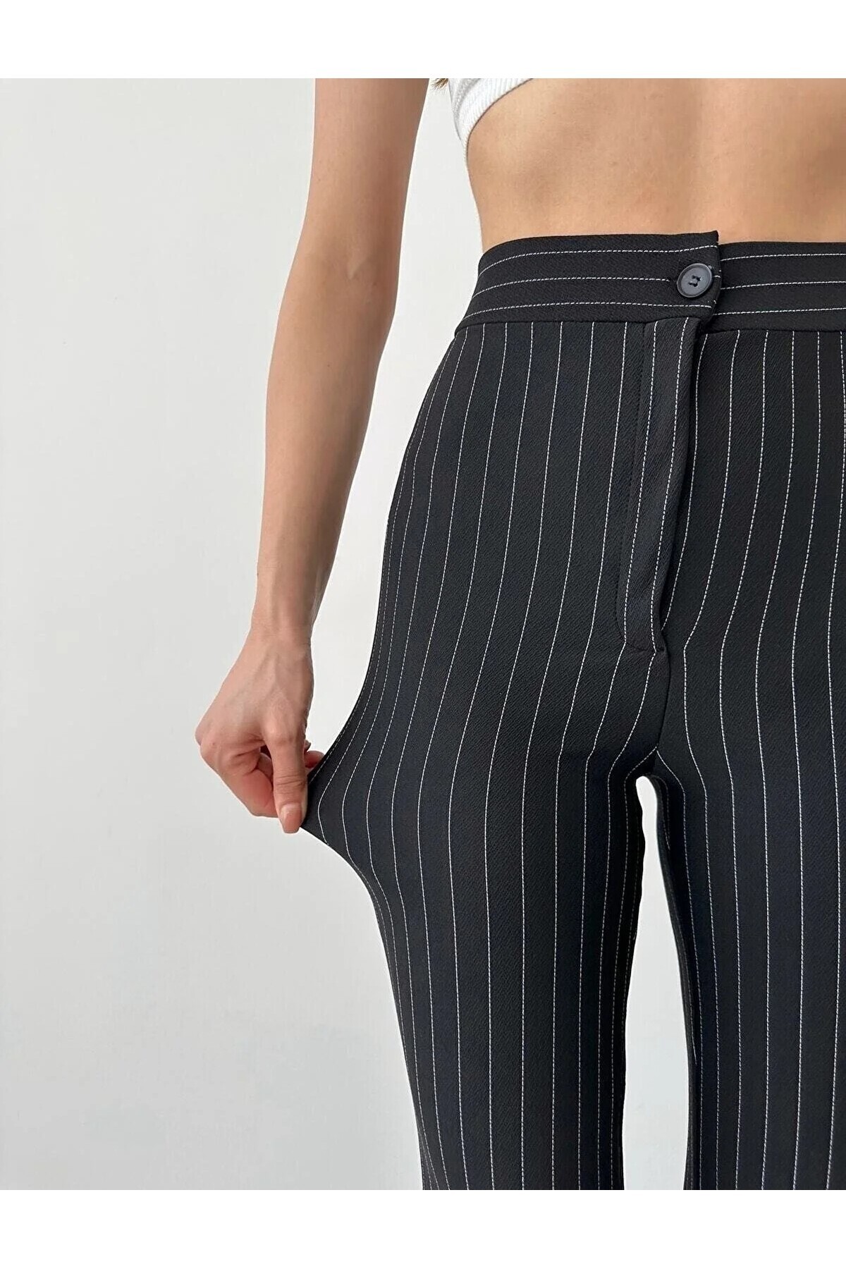 Kadın Lacivert Önü Çimalı Çizgili Pantolon ALC-X10113 Kadın Lacivert Önü Çimalı Çizgili Pantolon ALC-X10113 XL
