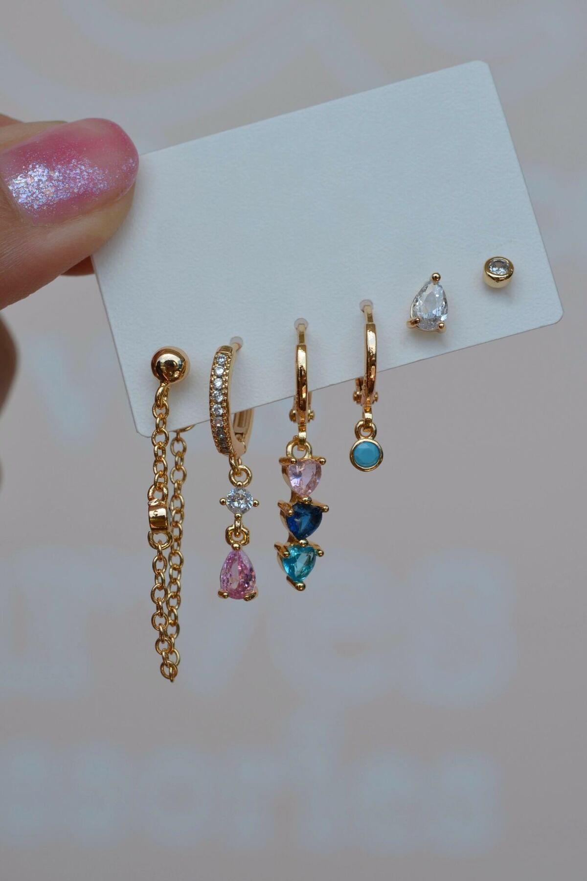 Zincir Sallantılı Asimetrik Molticolor Çok Renkli Küpe Seti 6 Parça Zincir Sallantılı Asimetrik Molticolor Çok Renkli Küpe Seti 6 Parça QSTUXY37 تک سایز