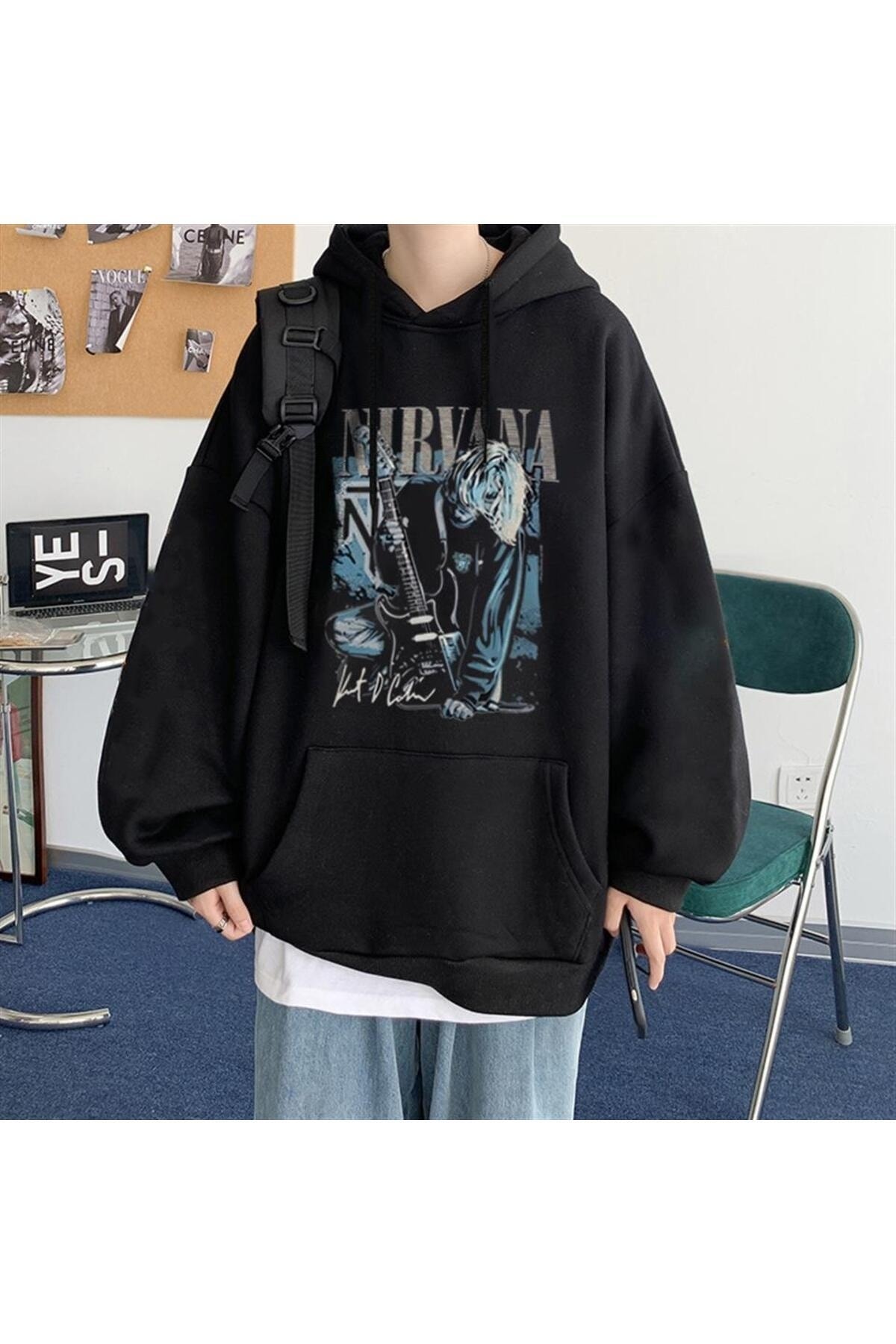 dompuleri moda Nirvana Poster Baskılı Siyah Unisex Oversize Kapüşonlu Sweatshirt dompuleri moda Nirvana Poster Baskılı Siyah Unisex Oversize Kapüşonlu Sweatshirt dp5184 L