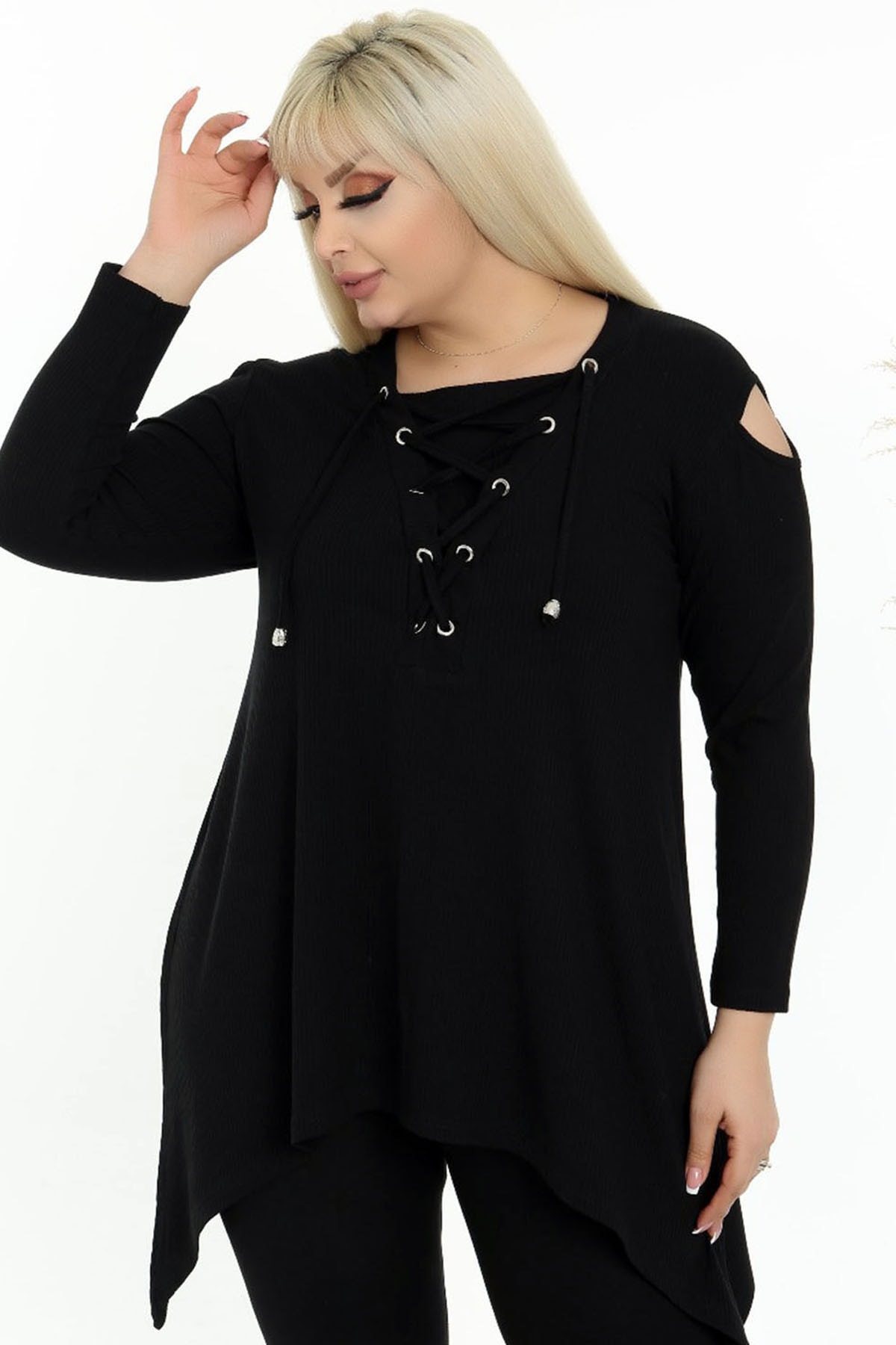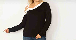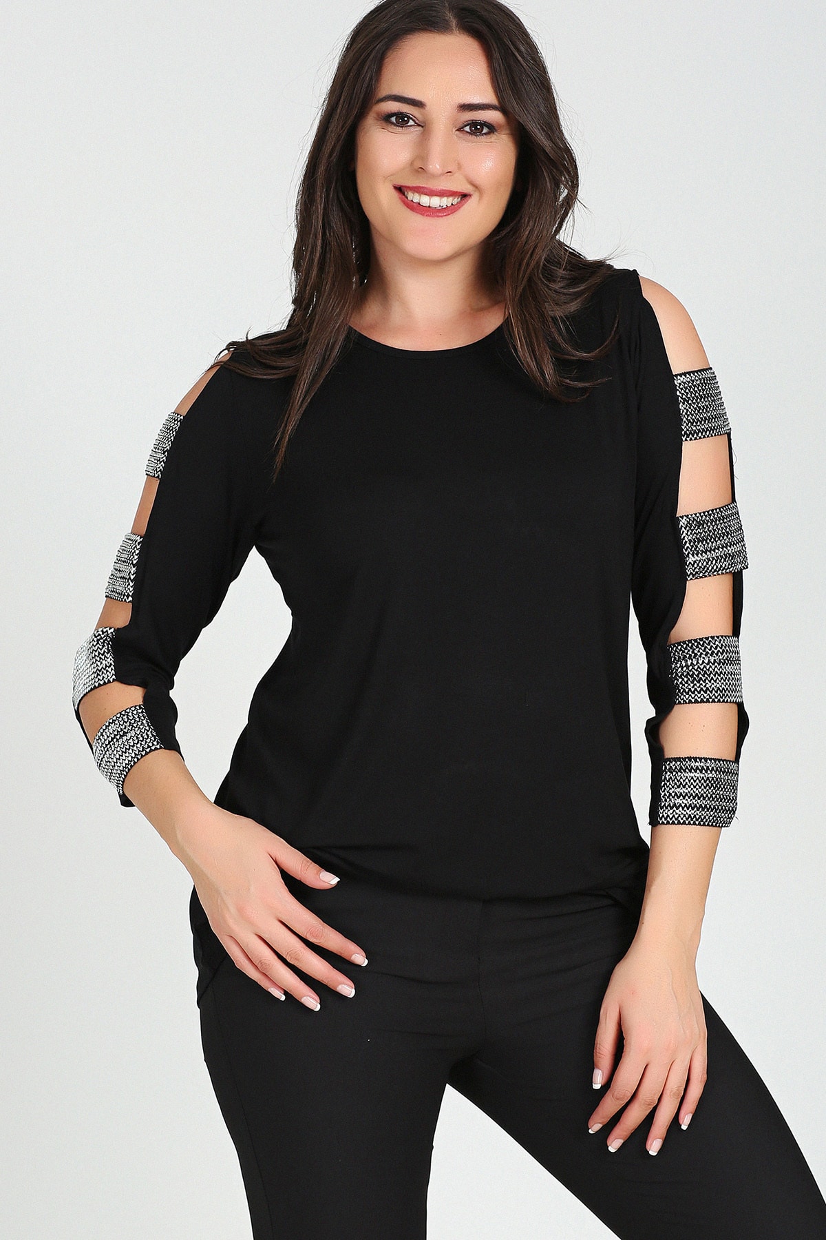 Kadın Büyük Beden Siyah Kuşgözü Detaylı Iki Renkli Bluz 65n36711 Kadın Büyük Beden Siyah Kuşgözü Detaylı Iki Renkli Bluz 65n36711 65N36711 48-50
