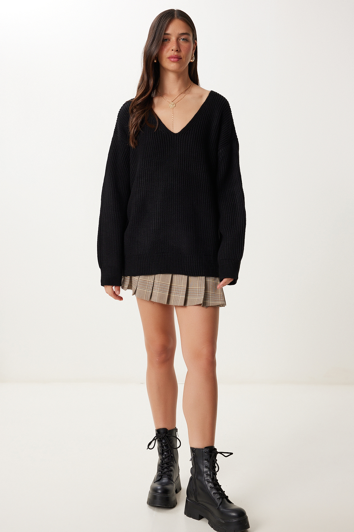 Kadın Bisküvi V Yaka Oversize Basic Triko Kazak MX00130 Kadın Bisküvi V Yaka Oversize Basic Triko Kazak MX00130 Standart
