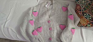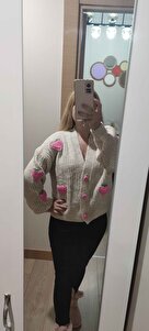 Kadın Bej Çilek Motifli Oversize Triko Hırka PF00008 Kadın Bej Çilek Motifli Oversize Triko Hırka PF00008 Standart