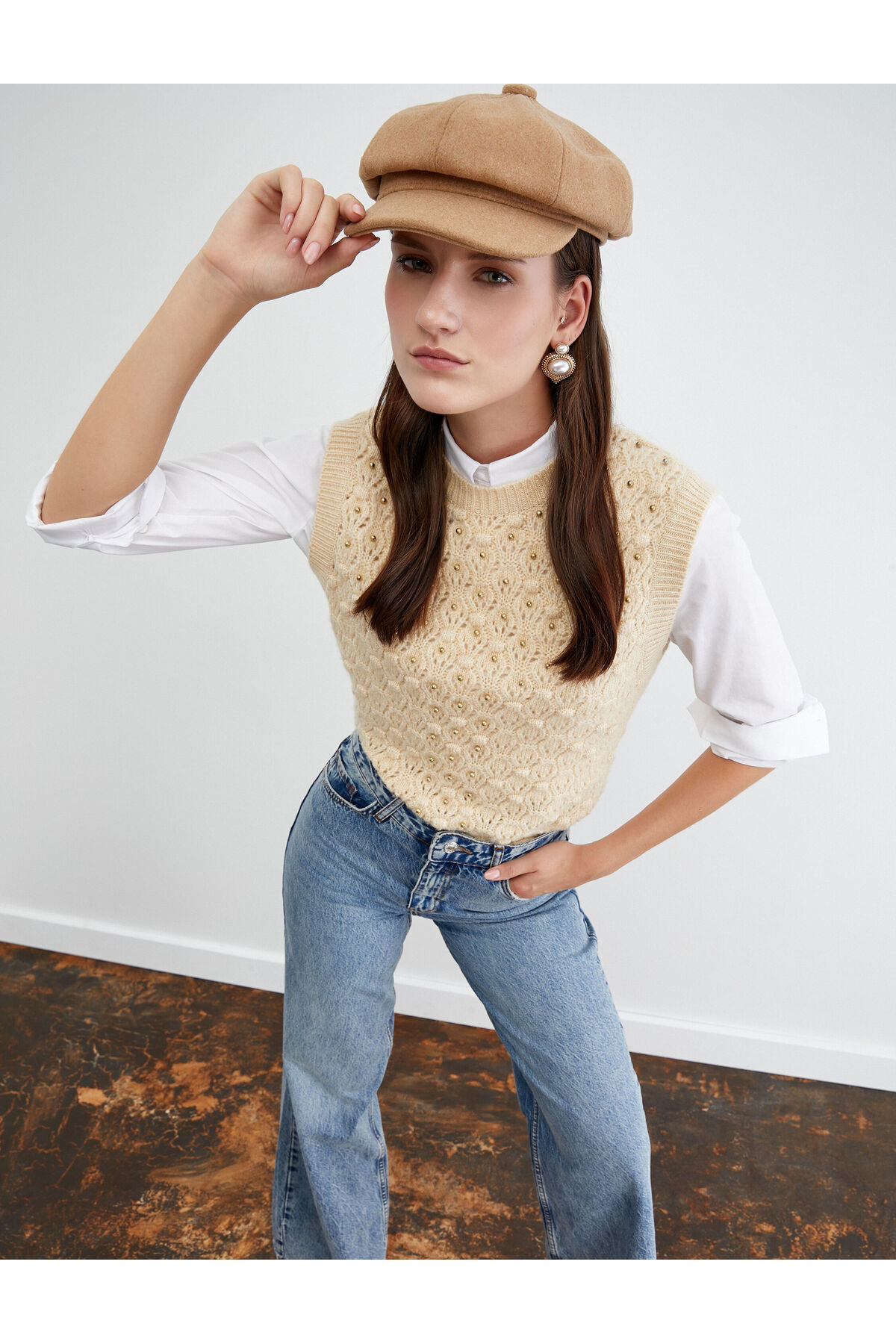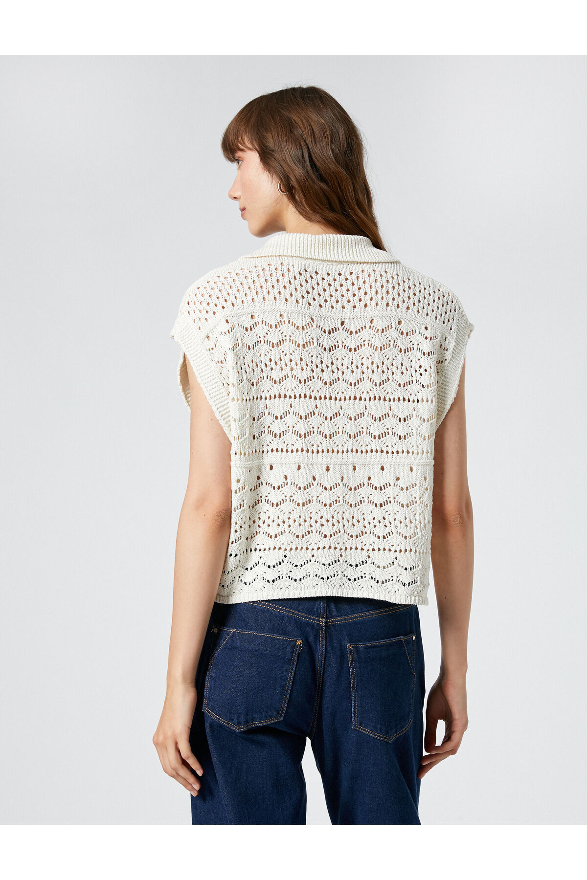 Örgü Yelek Ajurlu Polo Yaka Düğme Detaylı Örgü Yelek Ajurlu Polo Yaka Düğme Detaylı 4WAK20030HT XL