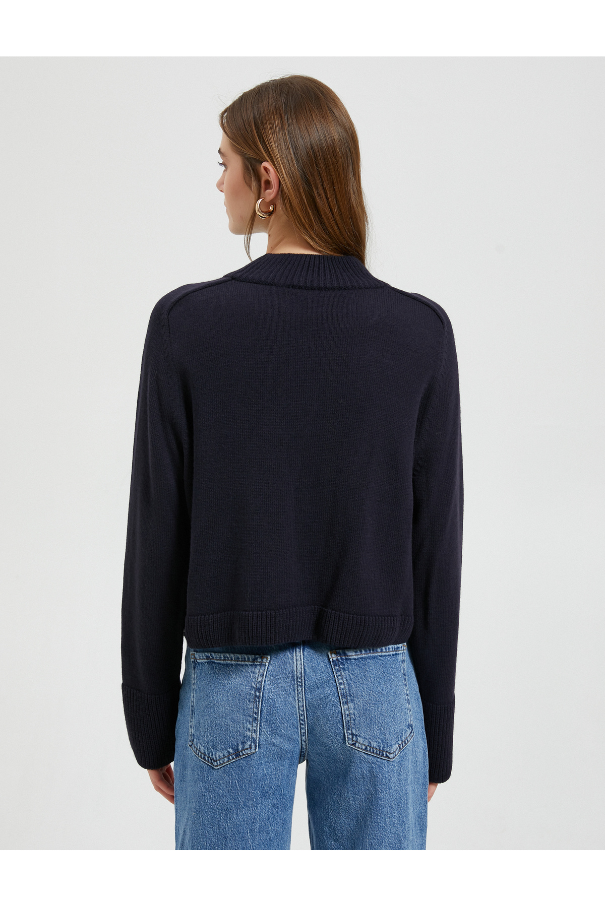 Crop Triko Kazak Dik Yaka Uzun Kollu Kaşmir Dokulu Crop Triko Kazak Dik Yaka Uzun Kollu Kaşmir Dokulu 4WAK90057HT 2XL