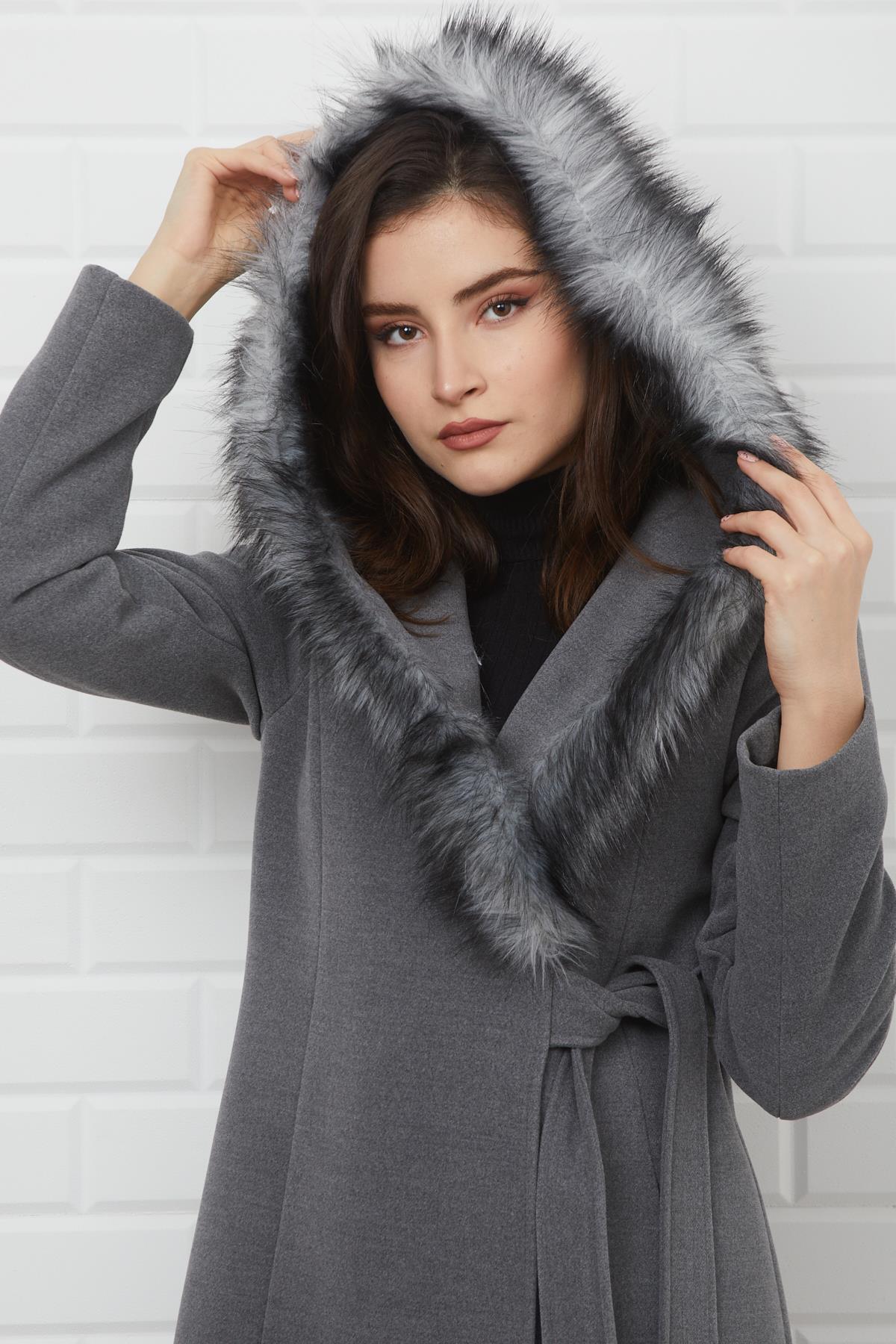 Yandan Bağlamalı Çıtçıt Kapamalı Kapşonu Kürklü Kaban Gri 3697 Yandan Bağlamalı Çıtçıt Kapamalı Kapşonu Kürklü Kaban Gri 3697 46