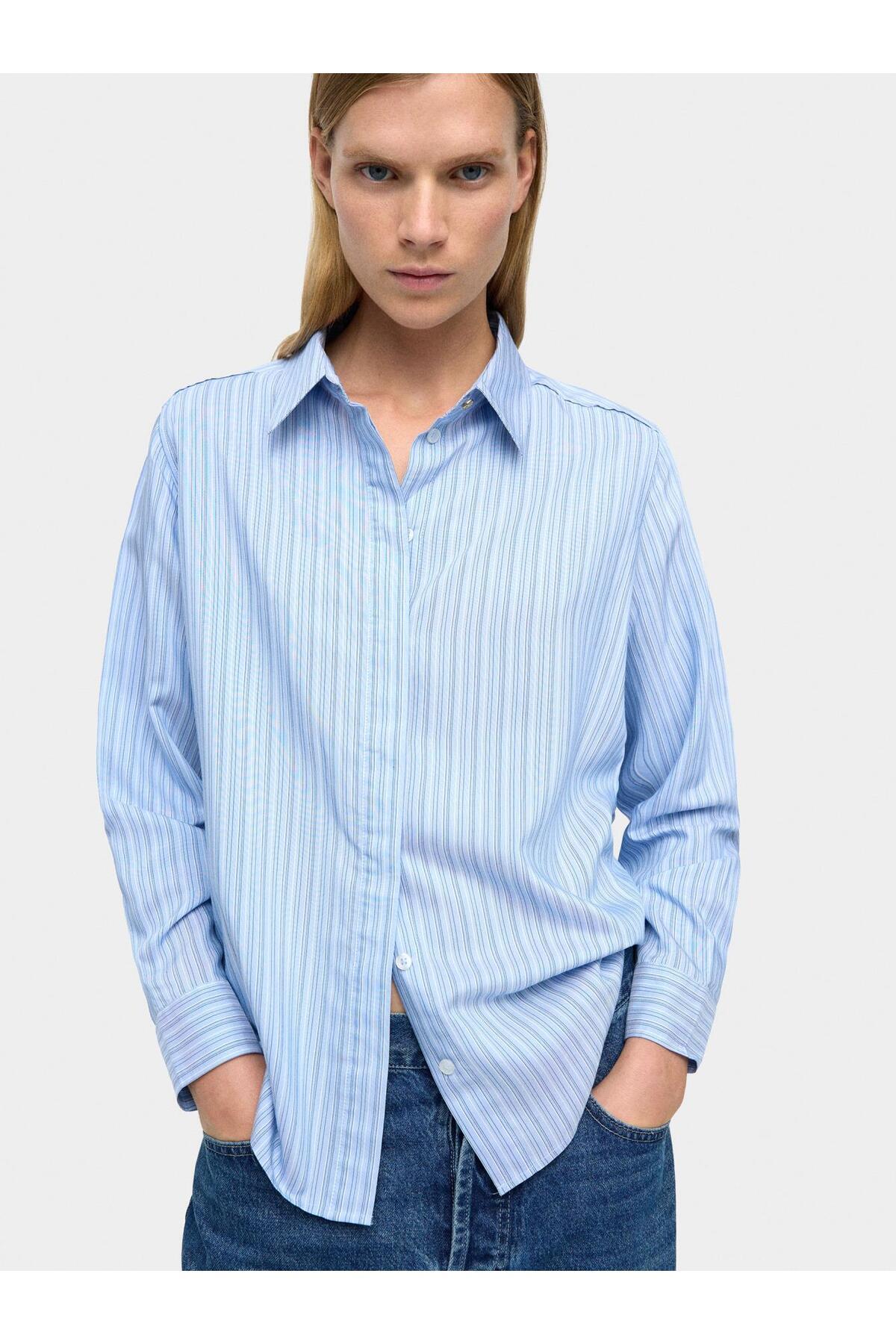 Kadın Soluk Mavi %100 Koton Çizgili Gömlek Kadın Soluk Mavi %100 Koton Çizgili Gömlek 123A53EVDQ053 L