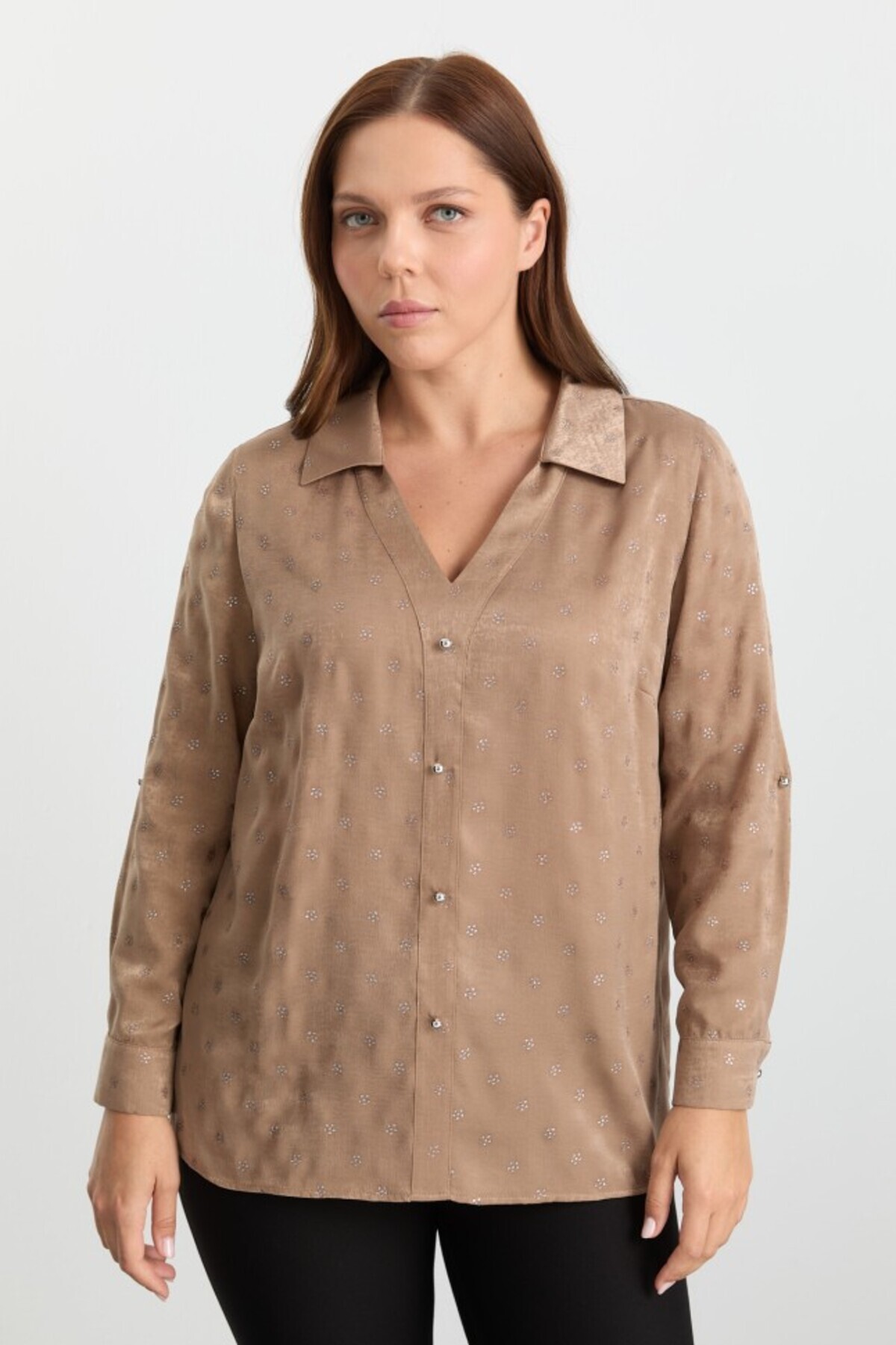 Büyük Beden Önü Düğmeli Şömiziye Yaka Penye Bluz Büyük Beden Önü Düğmeli Şömiziye Yaka Penye Bluz 23YSL8529 50