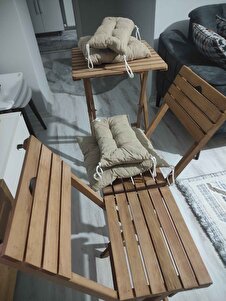 Sırt ve Oturak Minderli Balkon Bahçe Teras Ahşap Bistro Set Sırt ve Oturak Minderli Balkon Bahçe Teras Ahşap Bistro Set 62738 تک سایز