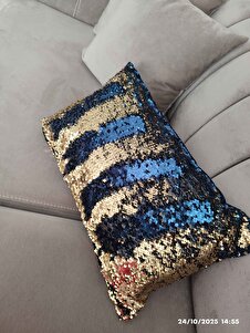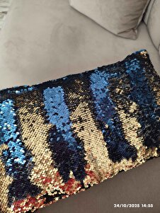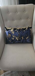 Pullu Payetli Çift Yönlü Dikdörtgen Kırlent Kılıfı - Lacivert-Gold Pullu Payetli Çift Yönlü Dikdörtgen Kırlent Kılıfı - Lacivert-Gold PAYÇ18 30 x 50
