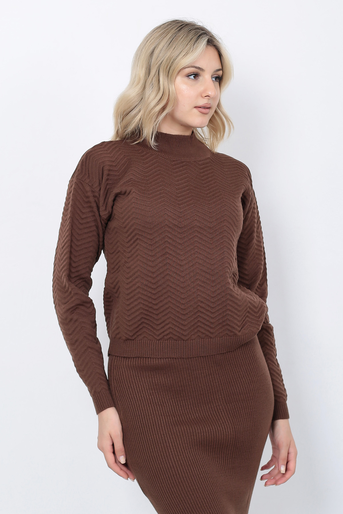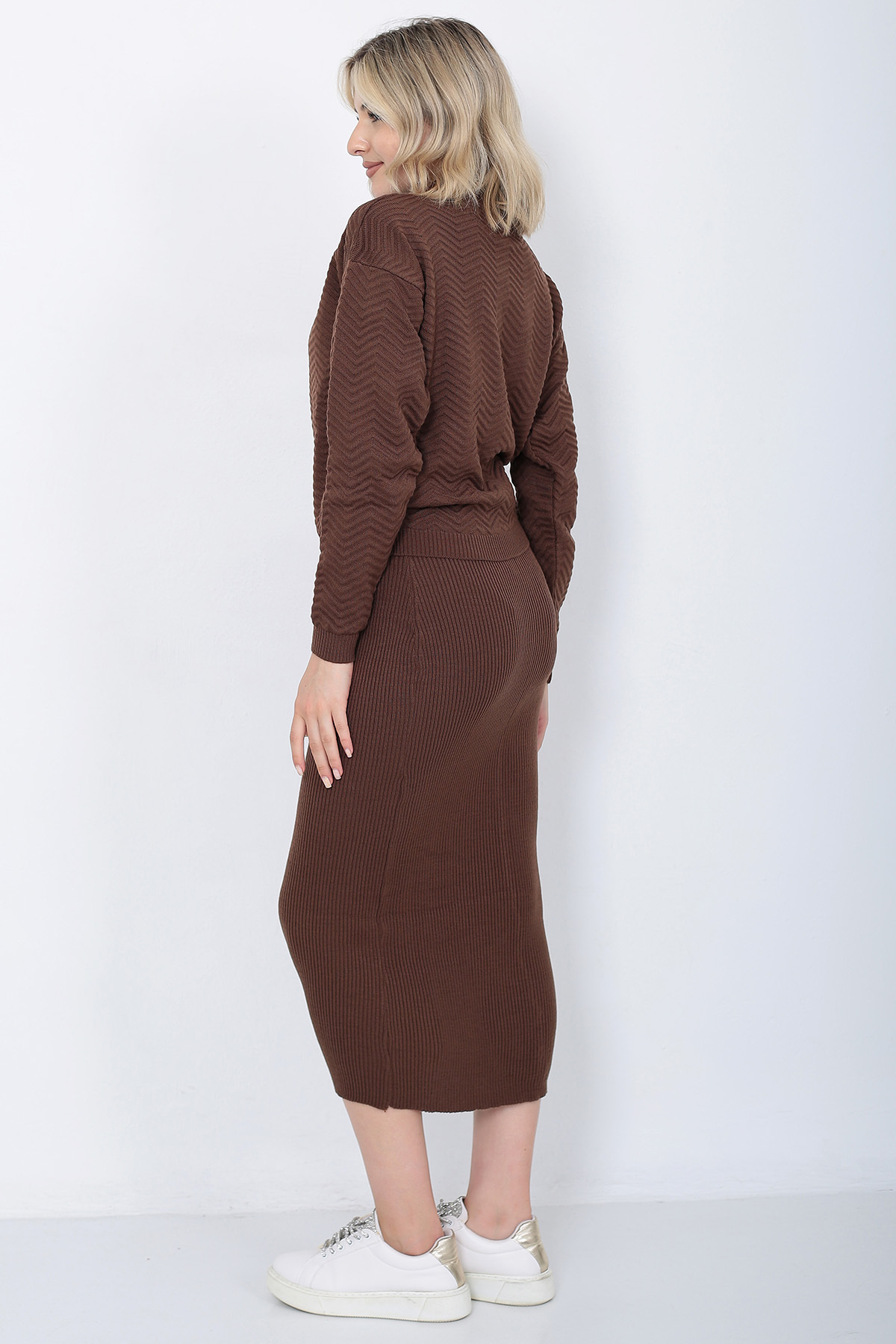 Kadın Triko Zikzak Çizgili Kazak Ve Etek Takım Oversize Kahverengi Kadın Triko Zikzak Çizgili Kazak Ve Etek Takım Oversize Kahverengi P2569S4290 Standart
