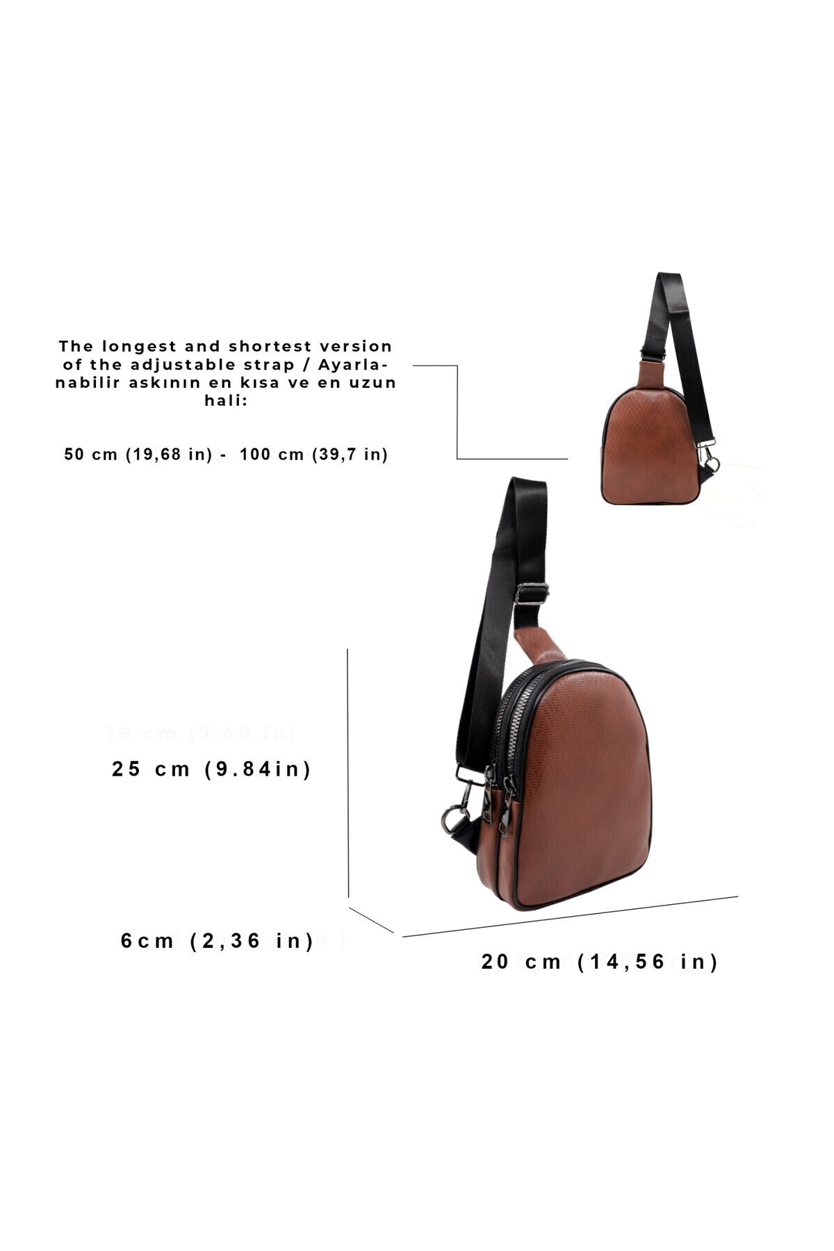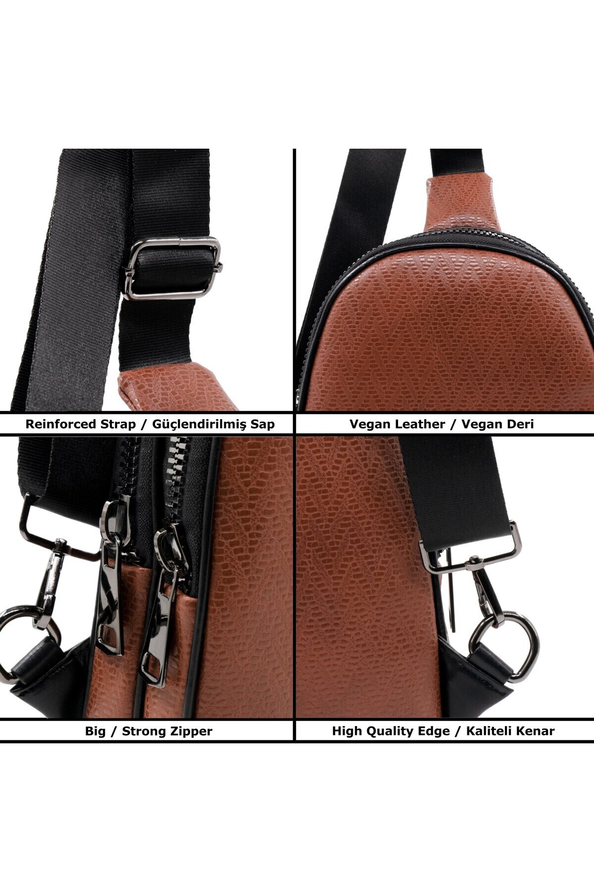 Alessi Kadın Piramit Desen Taba Çapraz Ayarlanabilir Iki Bölmeli Göğüs Çantası Alessi Kadın Piramit Desen Taba Çapraz Ayarlanabilir Iki Bölmeli Göğüs Çantası EE181172 Standart