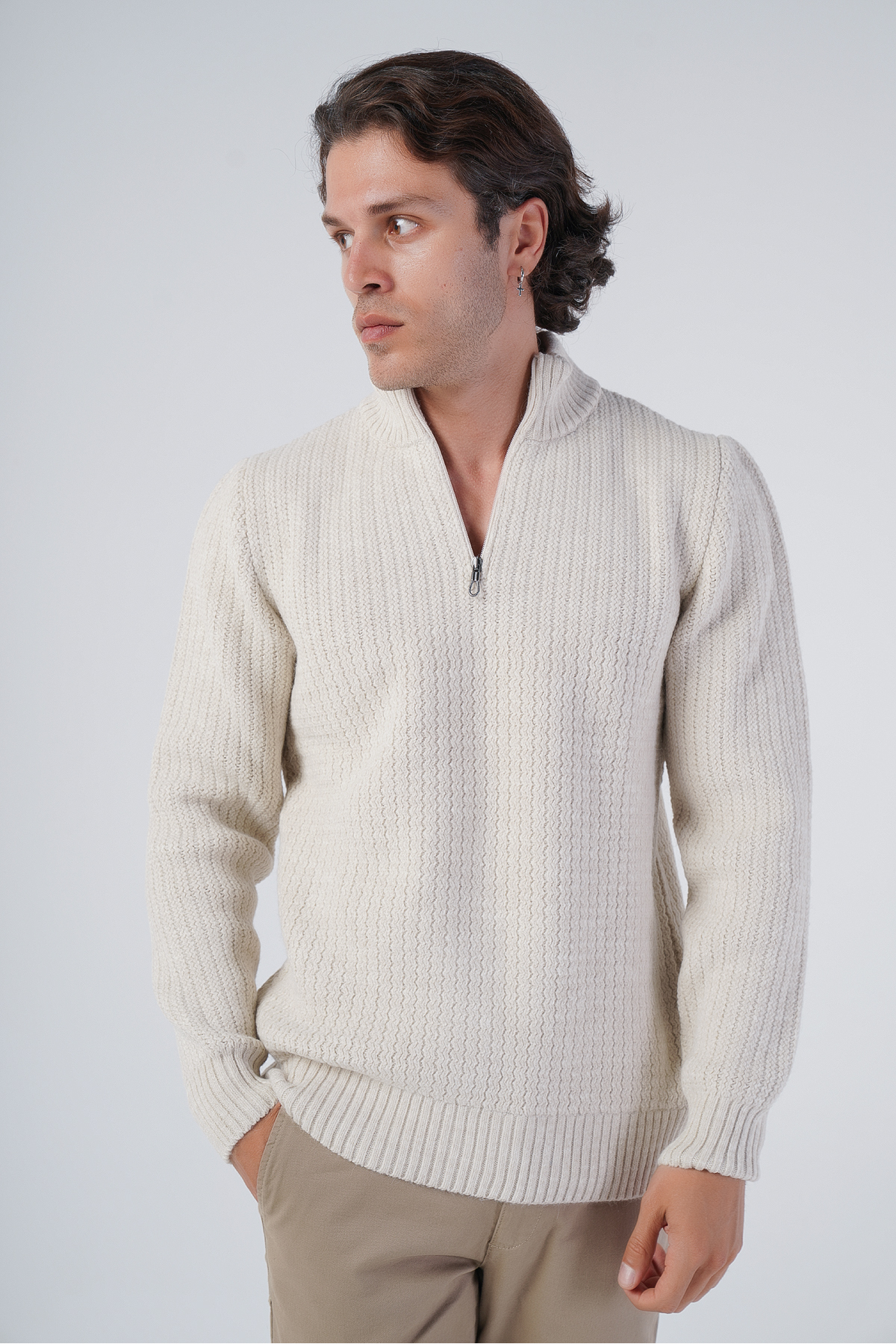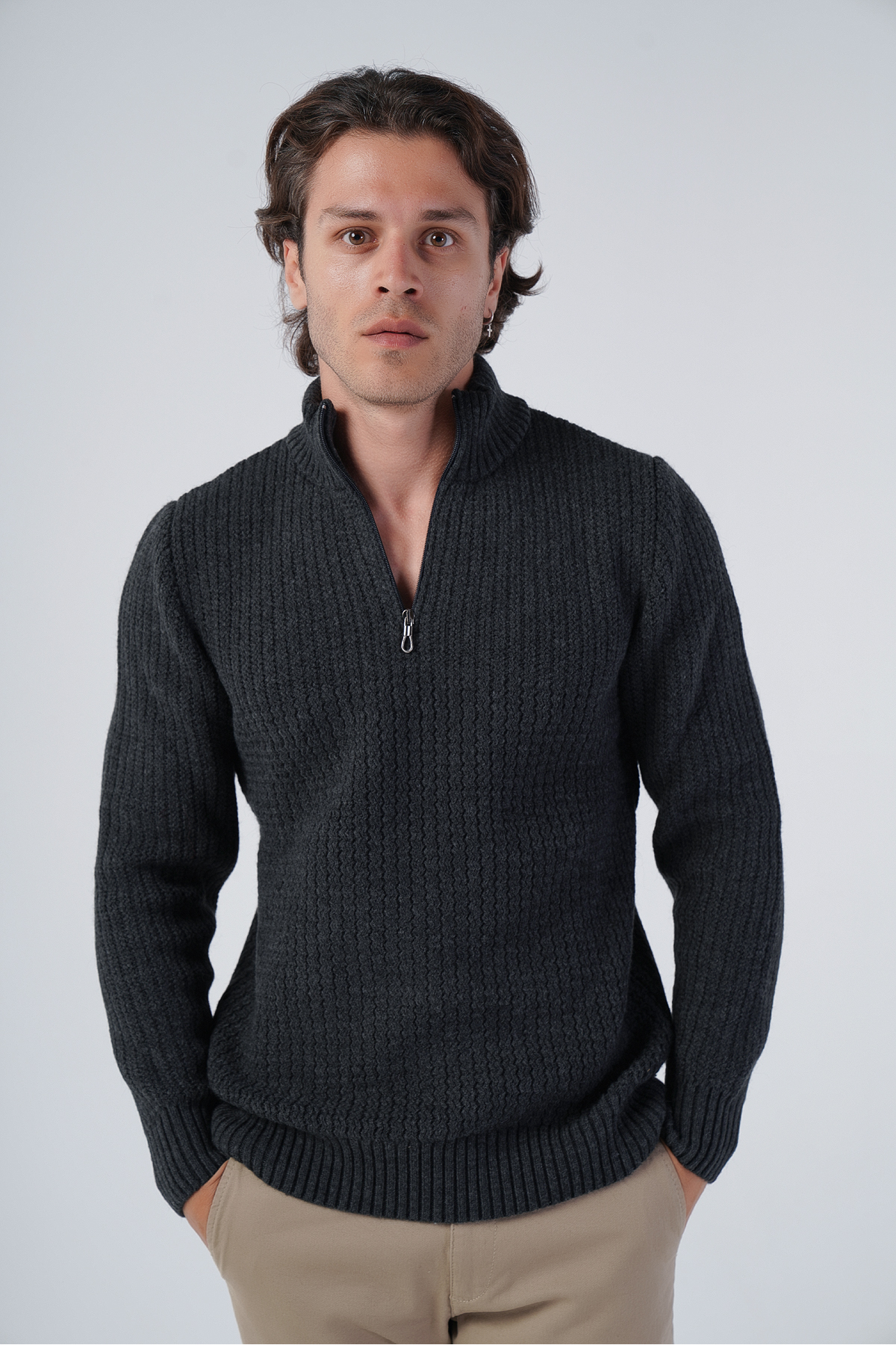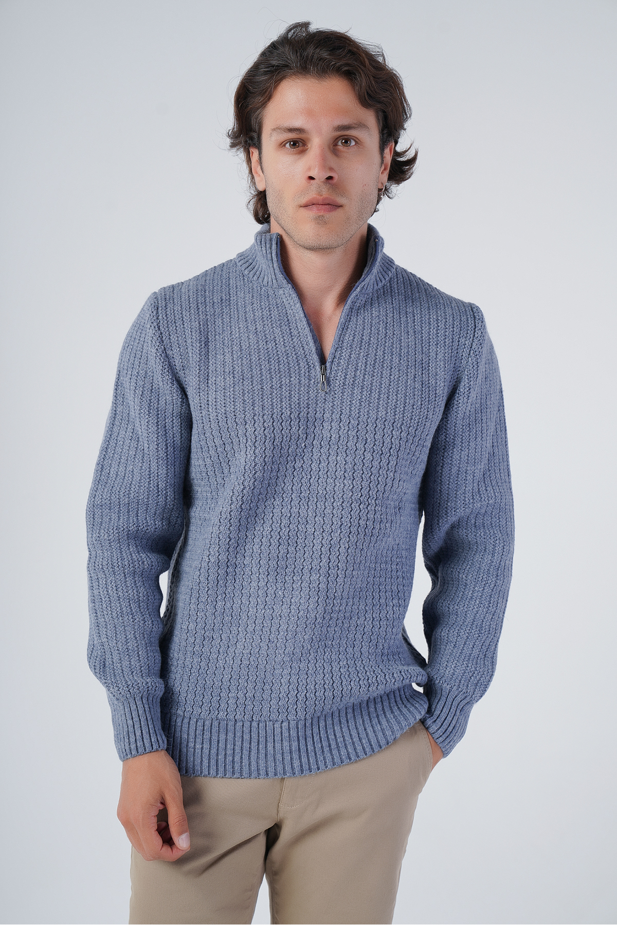 Lacivert Erkek Zikzak Yürütmeli Dik Yaka Kısa Fermuarlı Triko Yün Kazak Lacivert Erkek Zikzak Yürütmeli Dik Yaka Kısa Fermuarlı Triko Yün Kazak TRIST-5301 2XL