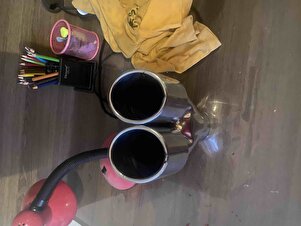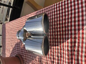 çift çıkış egzoz ucu paslanmaz krom eğik uçlu kartal logolu çift çıkış egzoz ucu paslanmaz krom eğik uçlu kartal logolu 80 lik eğik egzoz ucu krom تک سایز