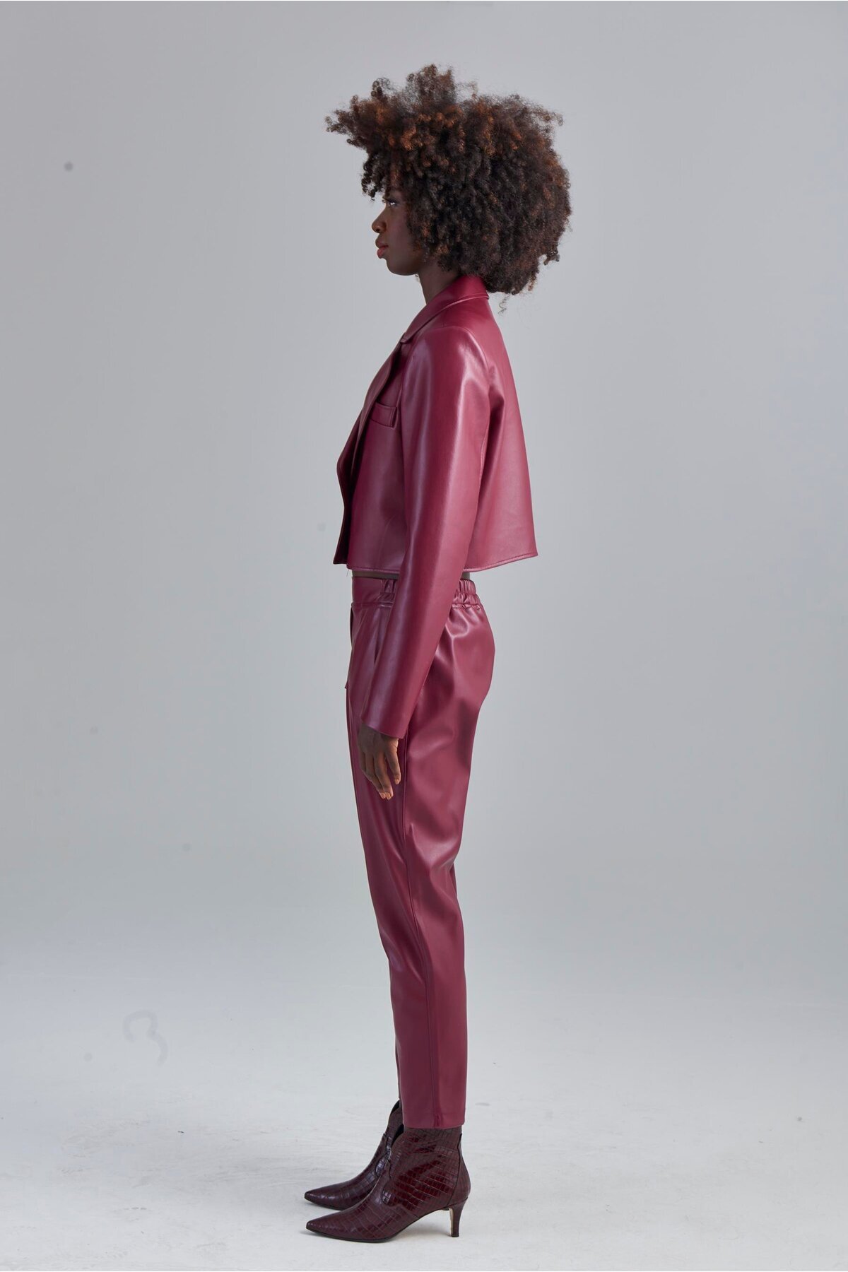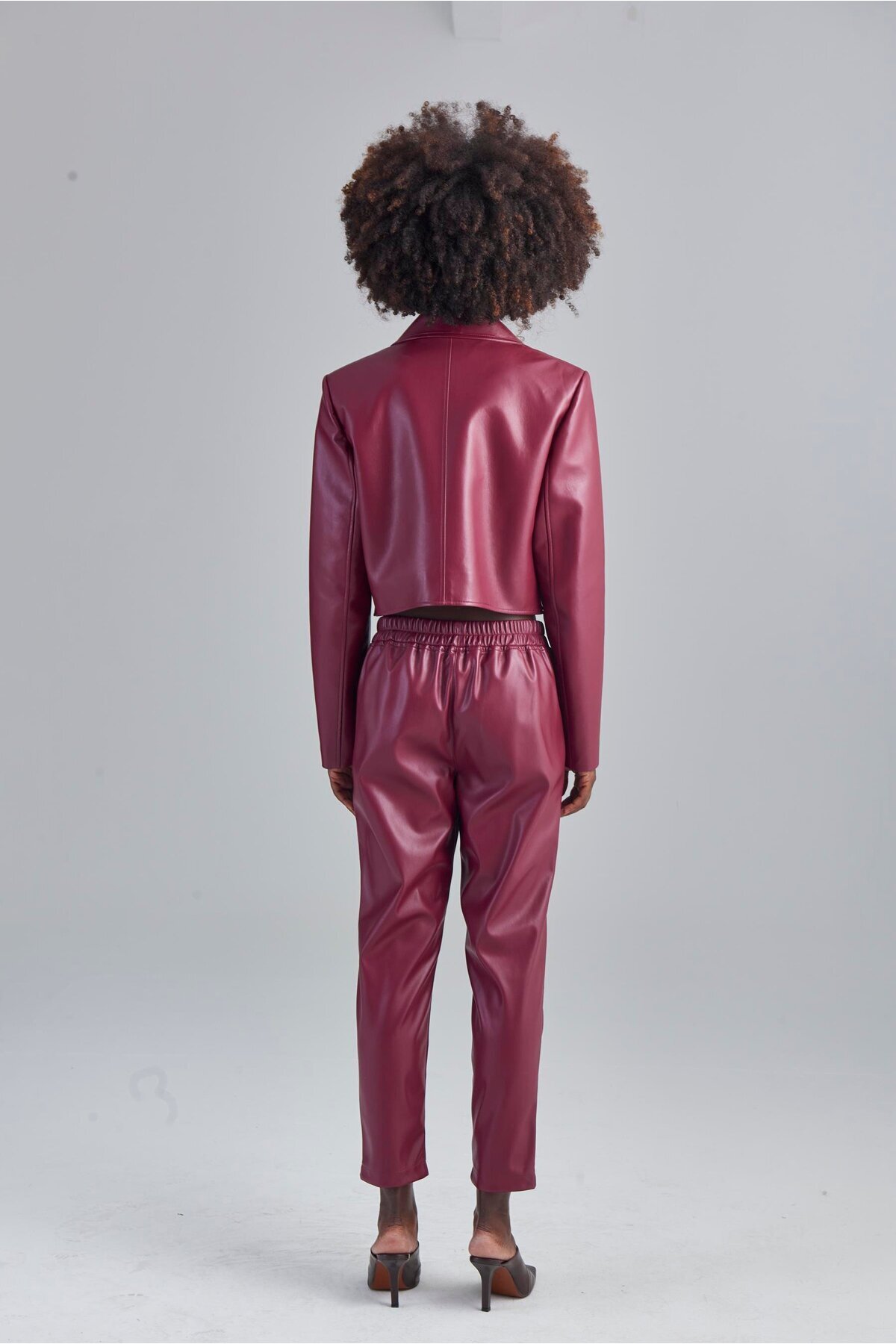 Beli Lastikli Pileli Vegan Deri Pantolon - Bordo Beli Lastikli Pileli Vegan Deri Pantolon - Bordo 8068 2XL
