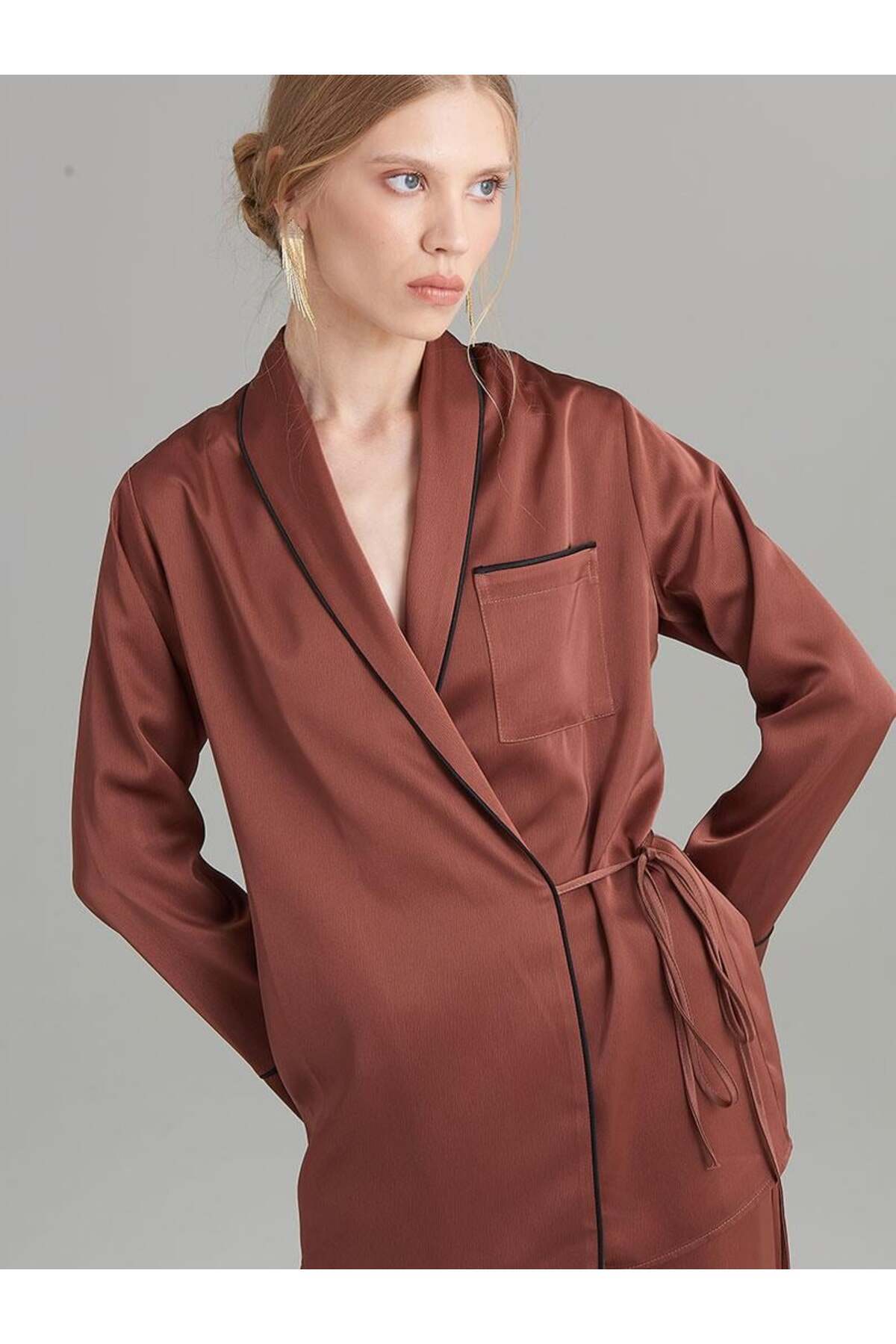 Anvelop Kapama Saten Pijama Ceket - Mint Yeşil Anvelop Kapama Saten Pijama Ceket - Mint Yeşil 7521 XL