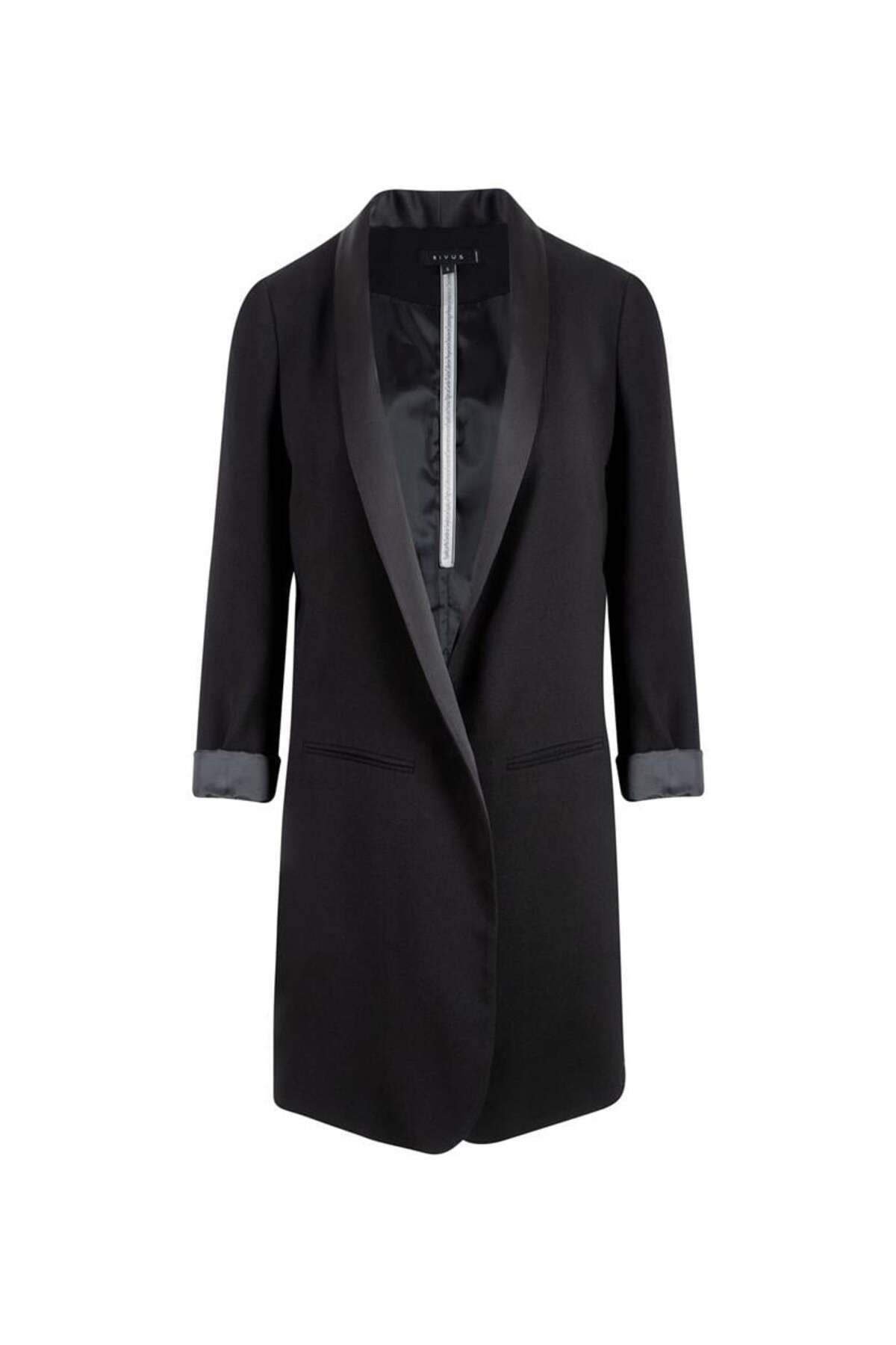 Garni Detaylı Uzun Blazer - Siyah Garni Detaylı Uzun Blazer - Siyah 23FWRV07008 2XL
