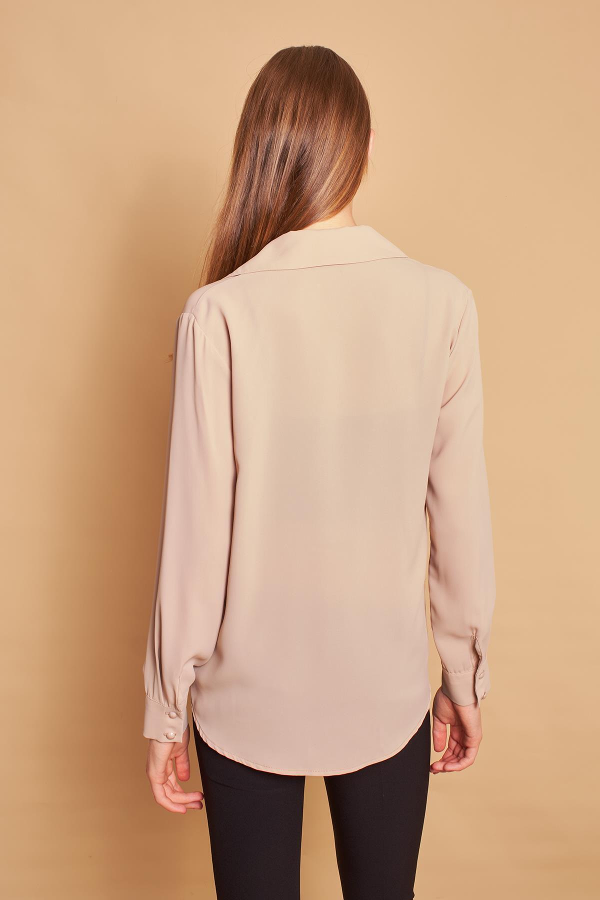Yakalı Önü Pileli Aksesuarlı Uzun Kol Likrasız Şık Kumaş Rahat Kesim Bluz-Kum Beji Yakalı Önü Pileli Aksesuarlı Uzun Kol Likrasız Şık Kumaş Rahat Kesim Bluz-Kum Beji 20442 XL