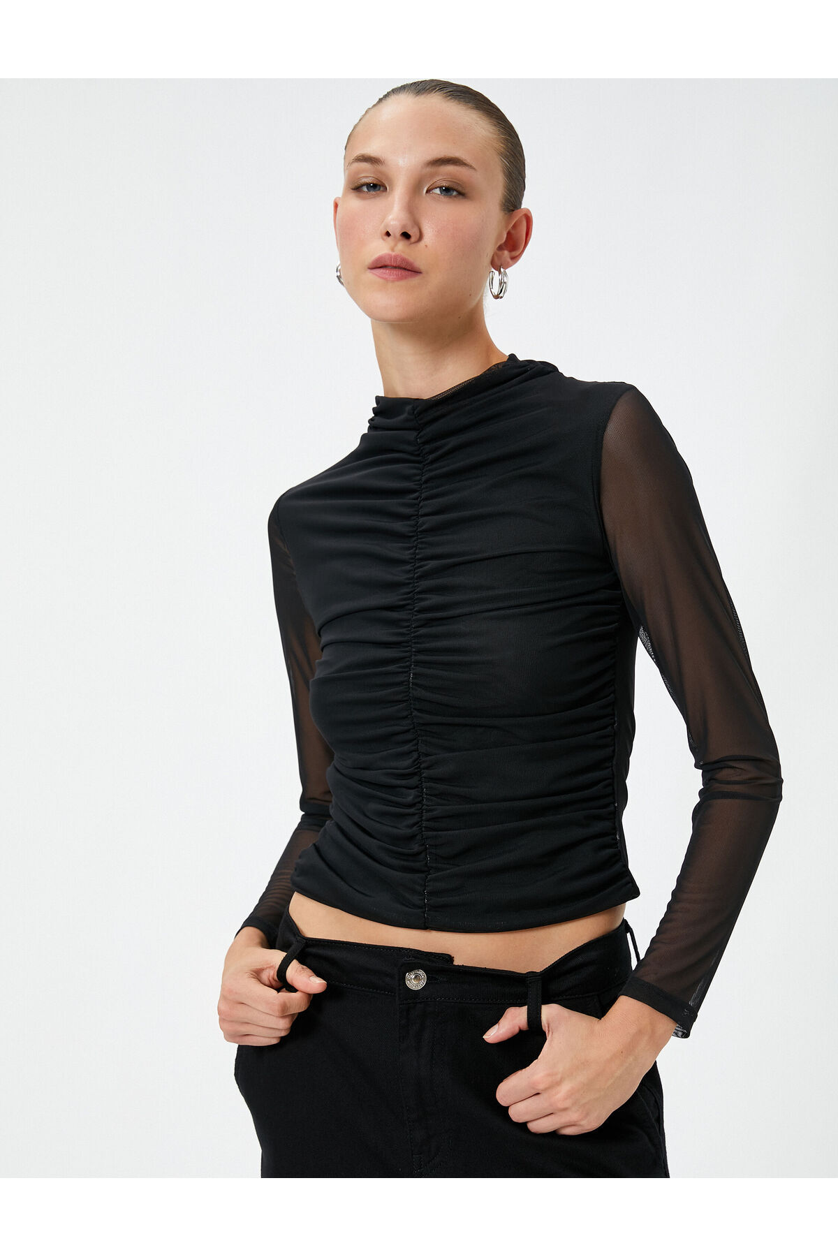 Uzun Kollu Tişört Crop Tül Detaylı Bisiklet Yaka Viskon Uzun Kollu Tişört Crop Tül Detaylı Bisiklet Yaka Viskon 4WAK50050EK XL