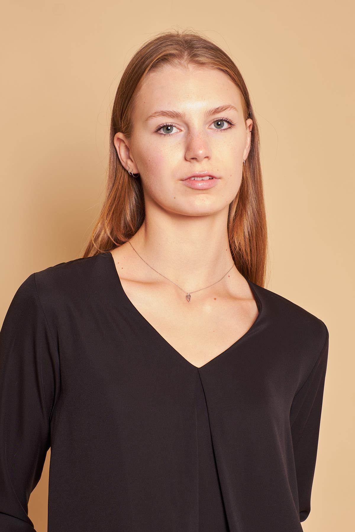 V Yaka Yakası Piliaşeli Uzun Kol Likrasız Şık Gömlek Kumaş Rahat Kesim Bluz-Siyah V Yaka Yakası Piliaşeli Uzun Kol Likrasız Şık Gömlek Kumaş Rahat Kesim Bluz-Siyah 20437 XL