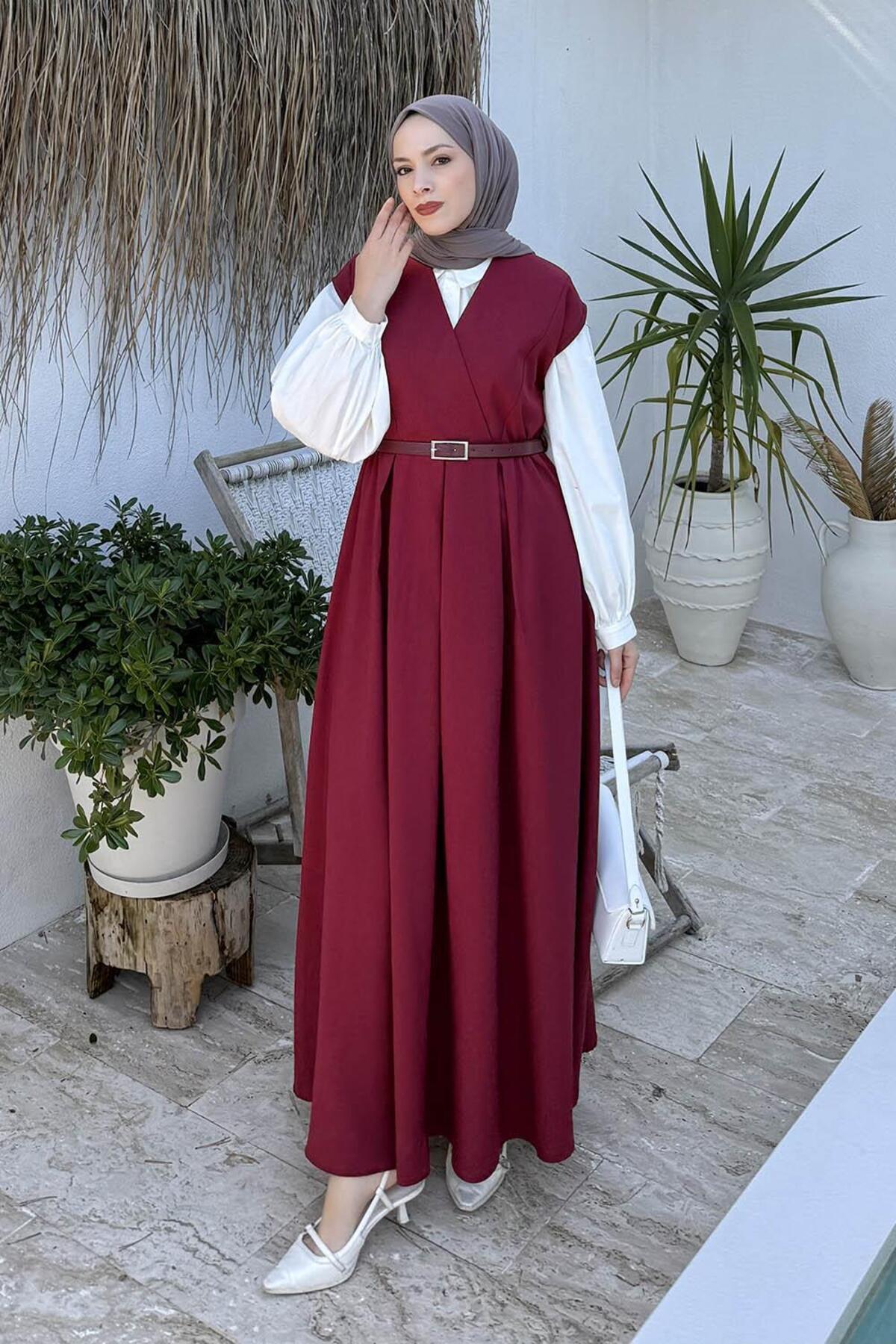 Balon Kol Kemerli Elbise Sütlü Kahve Balon Kol Kemerli Elbise Sütlü Kahve T-TBT2933 XL