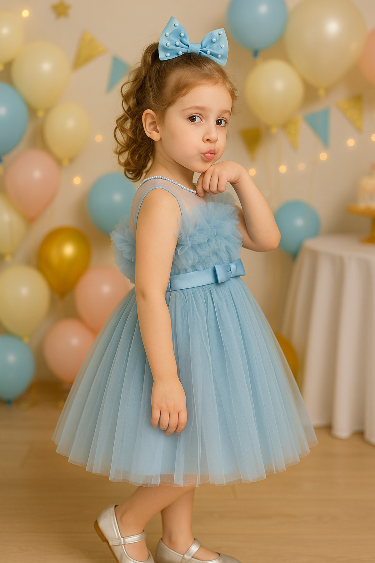 Abiye Kız çocuk Elbisesi Tüllü Saten İncili Düğün ve Doğum Günü Abiye Kız çocuk Elbisesi Tüllü Saten İncili Düğün ve Doğum Günü TREEMASS514 10