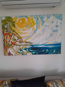 SAHİLDEKİ GÜNEŞ VE DENİZ YAĞLI BOYA DOKULU TABLO SAHİLDEKİ GÜNEŞ VE DENİZ YAĞLI BOYA DOKULU TABLO TD4340 100 x 140