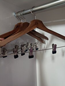Ahşap Askı Mandallı Gömlek Etek Askısı Ceviz Renk 6 Adet Ahşap Askı Mandallı Gömlek Etek Askısı Ceviz Renk 6 Adet M-002/ÇM CVZ 8 تک سایز