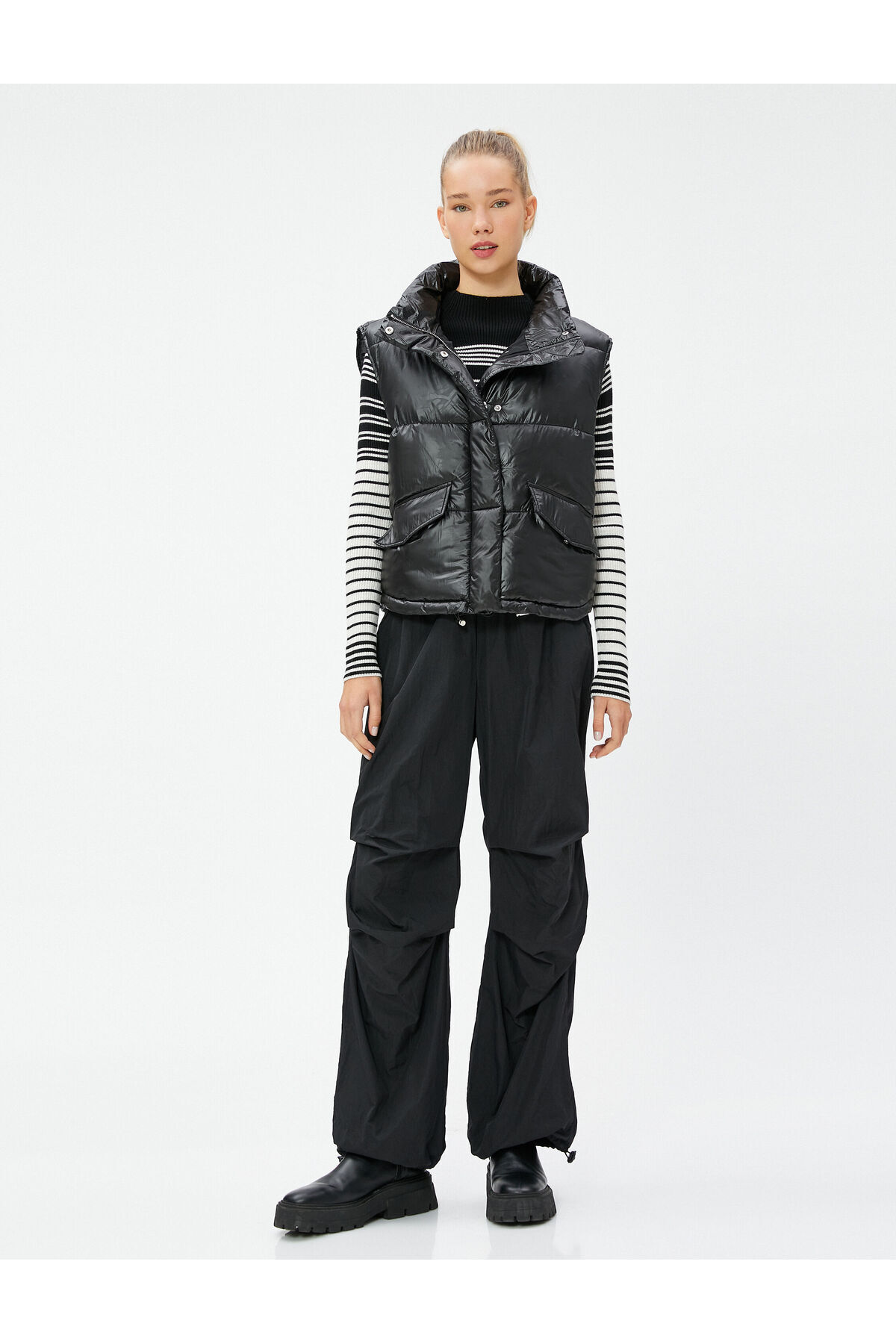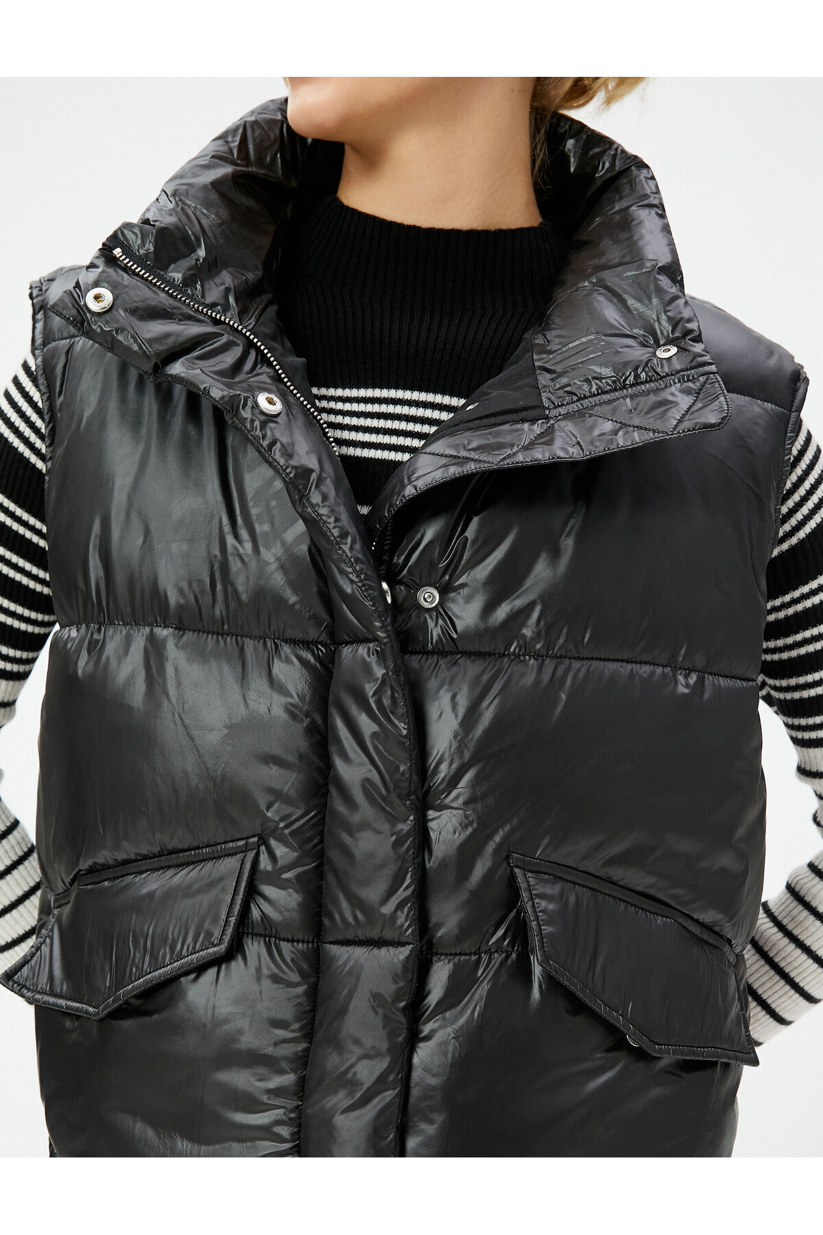 Şişme Yelek Dik Yaka Cep Detaylı Fermuarlı Çıtçıt Kapama Şişme Yelek Dik Yaka Cep Detaylı Fermuarlı Çıtçıt Kapama 4WAL20026IW 40