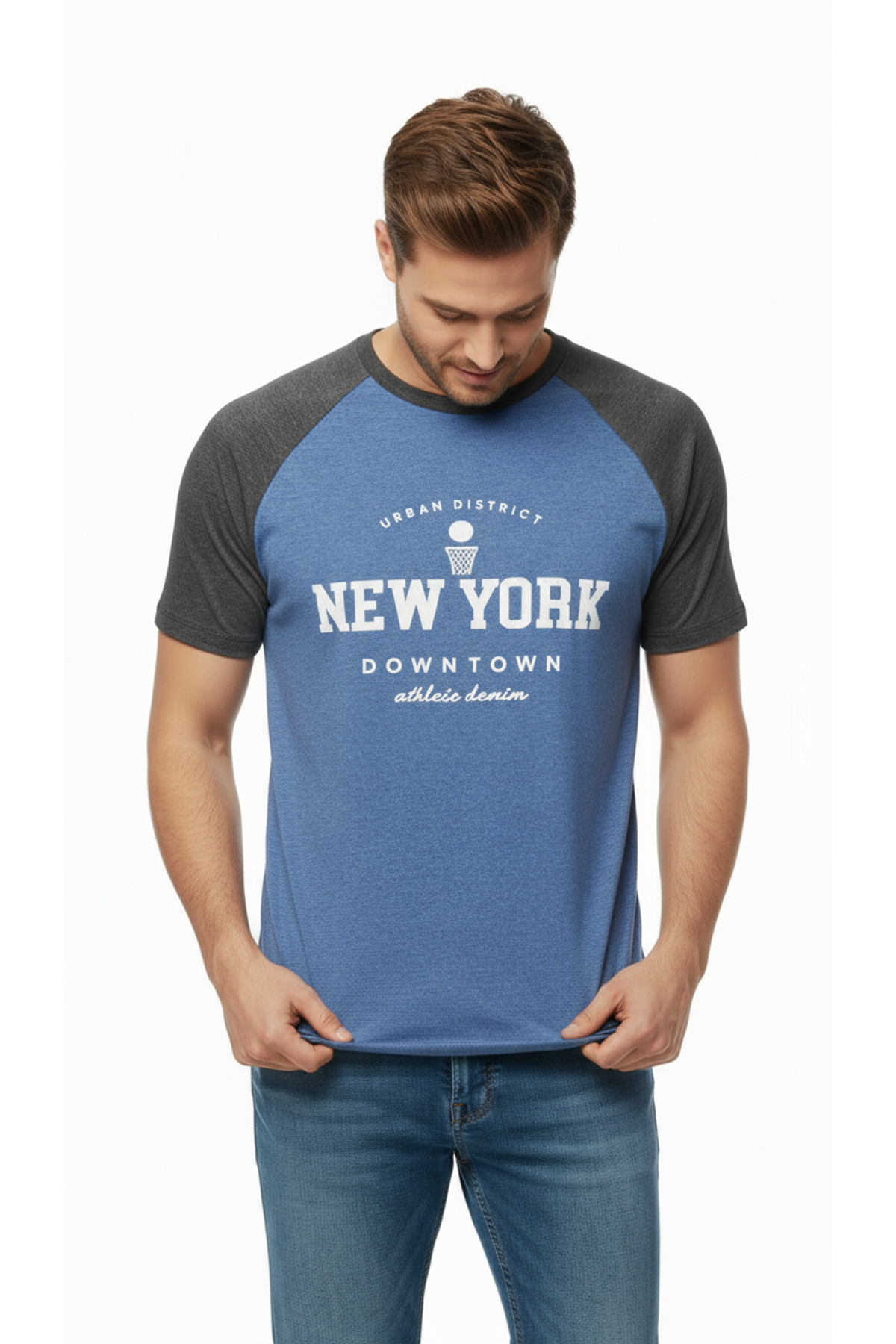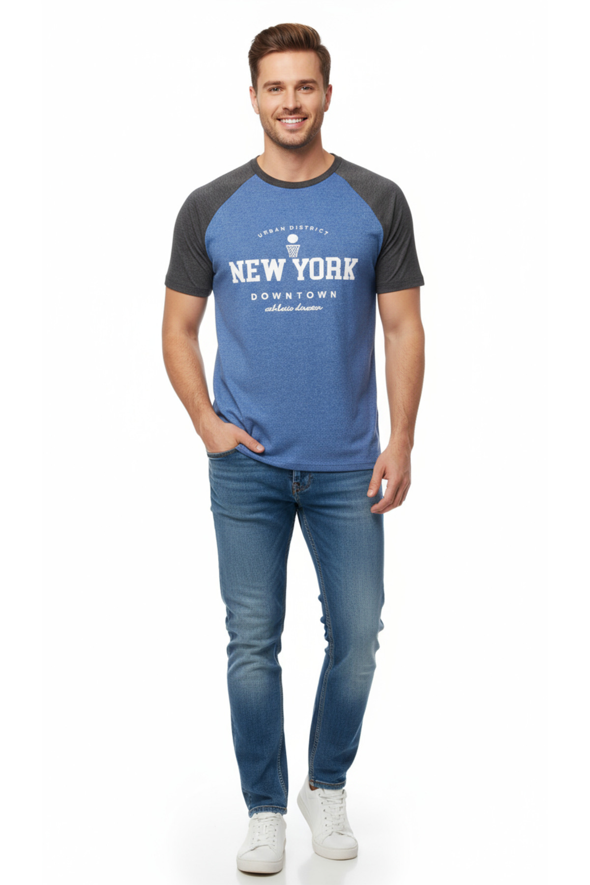 Mavi-Gri Erkek Slim Fit New York Basketbol Baskılı Bisiklet Yaka Kısa Kollu T-Shirt Mavi-Gri Erkek Slim Fit New York Basketbol Baskılı Bisiklet Yaka Kısa Kollu T-Shirt QTTSS2311 XL
