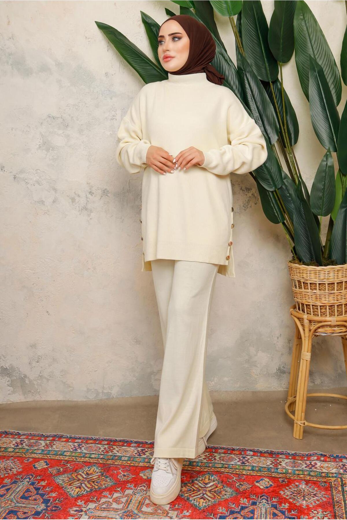 KADIN EKRU BOĞAZLI YAKA İKİLİ PANTOLONLU TRİKO TAKIM T 0108 KADIN EKRU BOĞAZLI YAKA İKİLİ PANTOLONLU TRİKO TAKIM T 0108 24KTKPTR0108 تک سایز
