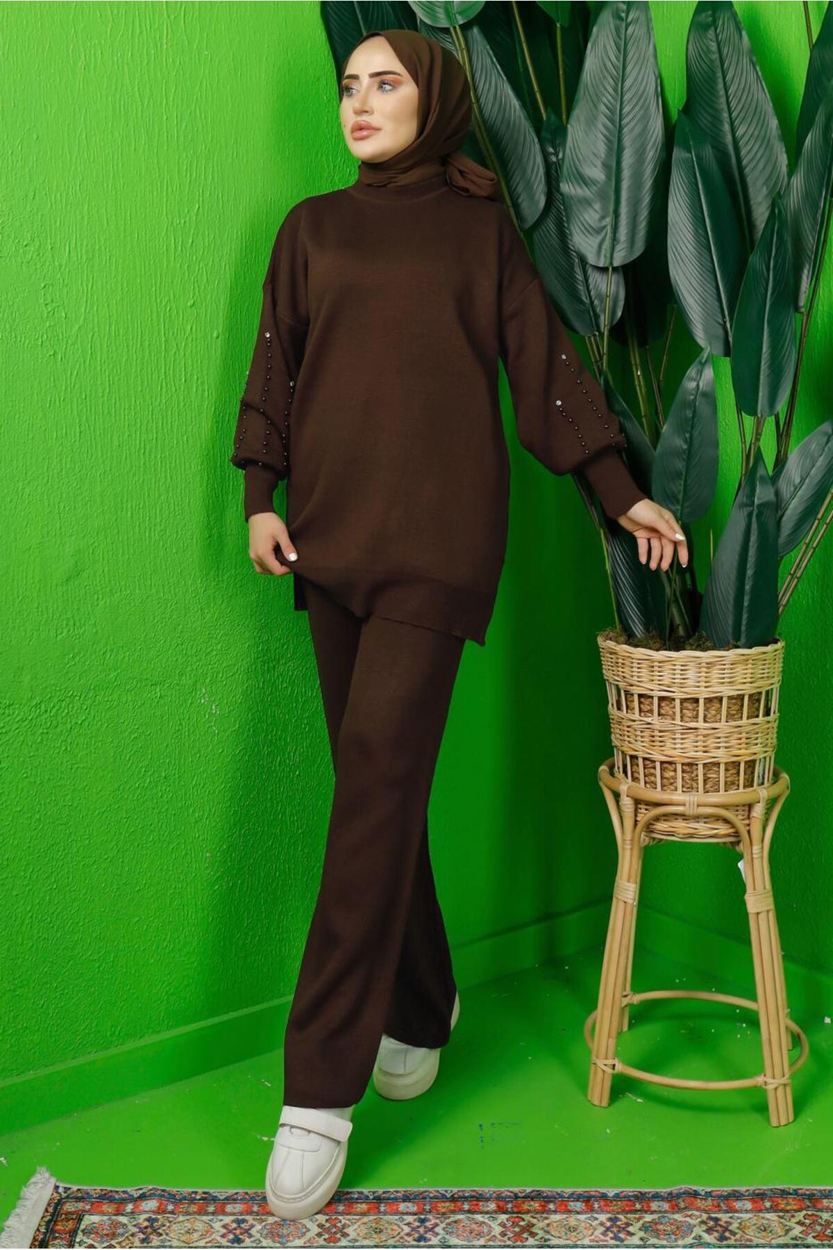 KADIN KAHVE KOLU BONCUK İŞLEMELİ PANTOLONLU TRİKO TAKIM T 8408 KADIN KAHVE KOLU BONCUK İŞLEMELİ PANTOLONLU TRİKO TAKIM T 8408 24KTKPTR8408 تک سایز