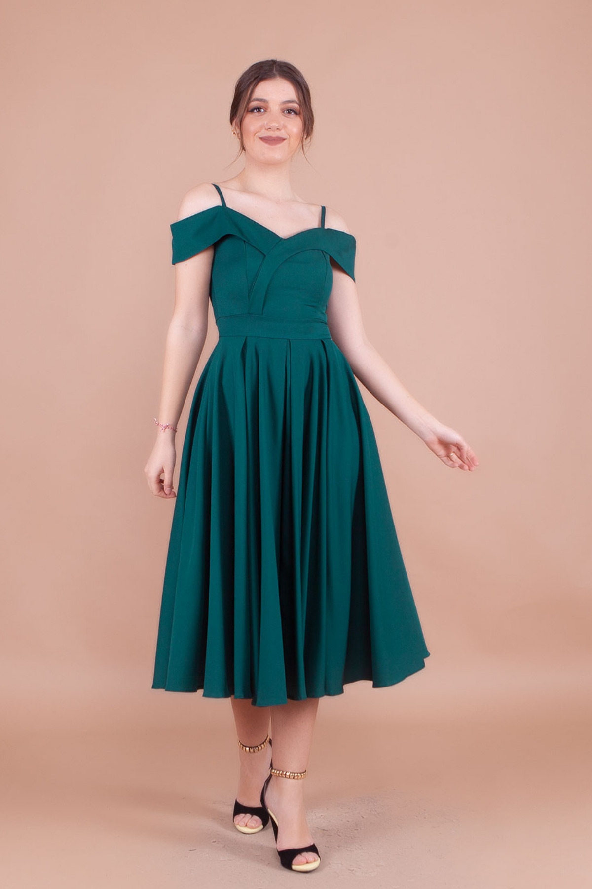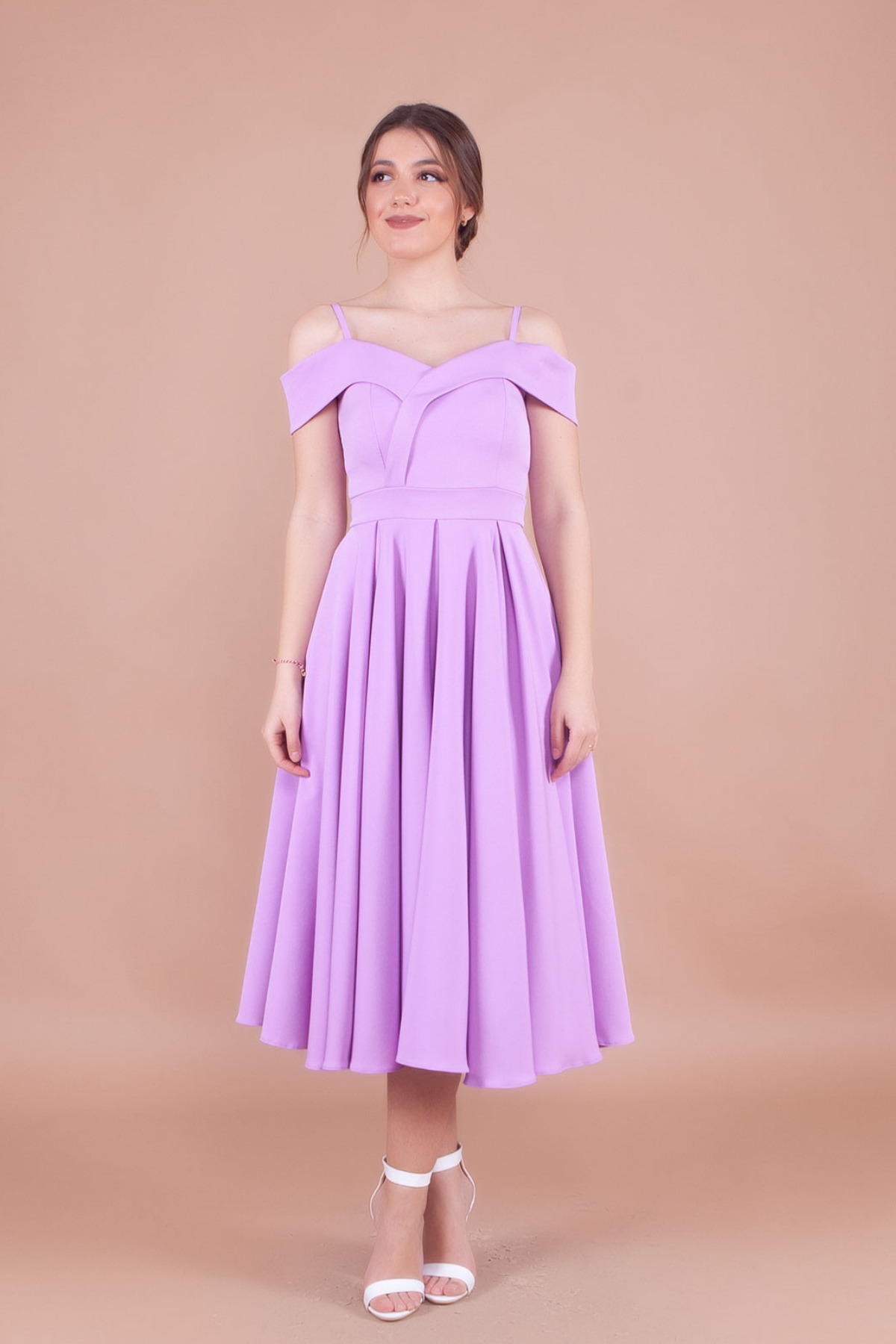 Mürdüm Midi Boy Askılı Düşük Omuz Detay Pileli Elbise Mürdüm Midi Boy Askılı Düşük Omuz Detay Pileli Elbise DMR-0342-MIDIGLR 54