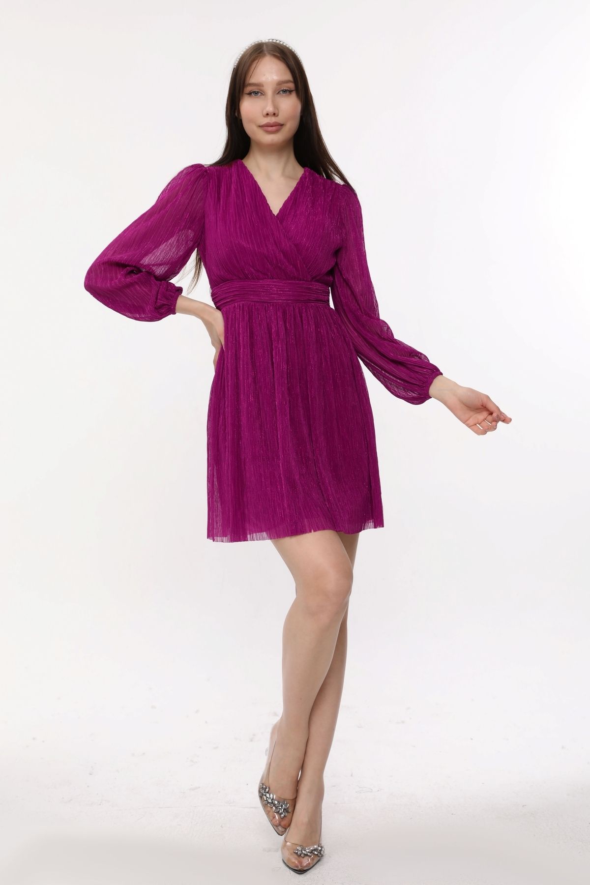 Kruvaze Yaka Korsajlı Büzgülü Şifon Elbise Kruvaze Yaka Korsajlı Büzgülü Şifon Elbise 80186 50