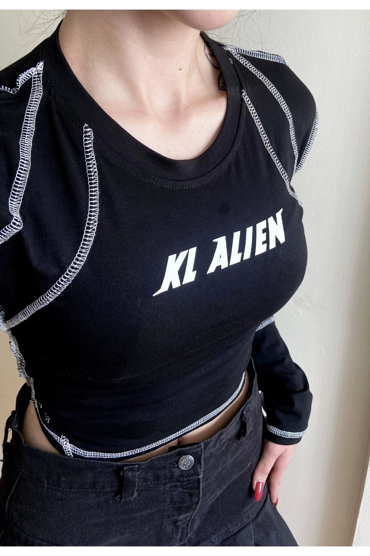 Harajuku Y2K KL ALIEN Uzun Kollu Crop Bluz Harajuku Y2K KL ALIEN Uzun Kollu Crop Bluz 54236 L