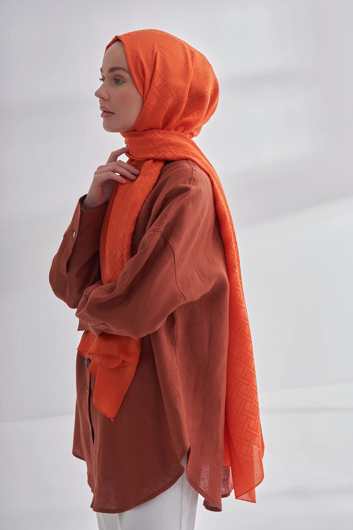 Italyan Jakar Geometrik Desen Şal - Sisli Pudra Italyan Jakar Geometrik Desen Şal - Sisli Pudra 3079 70 x 190