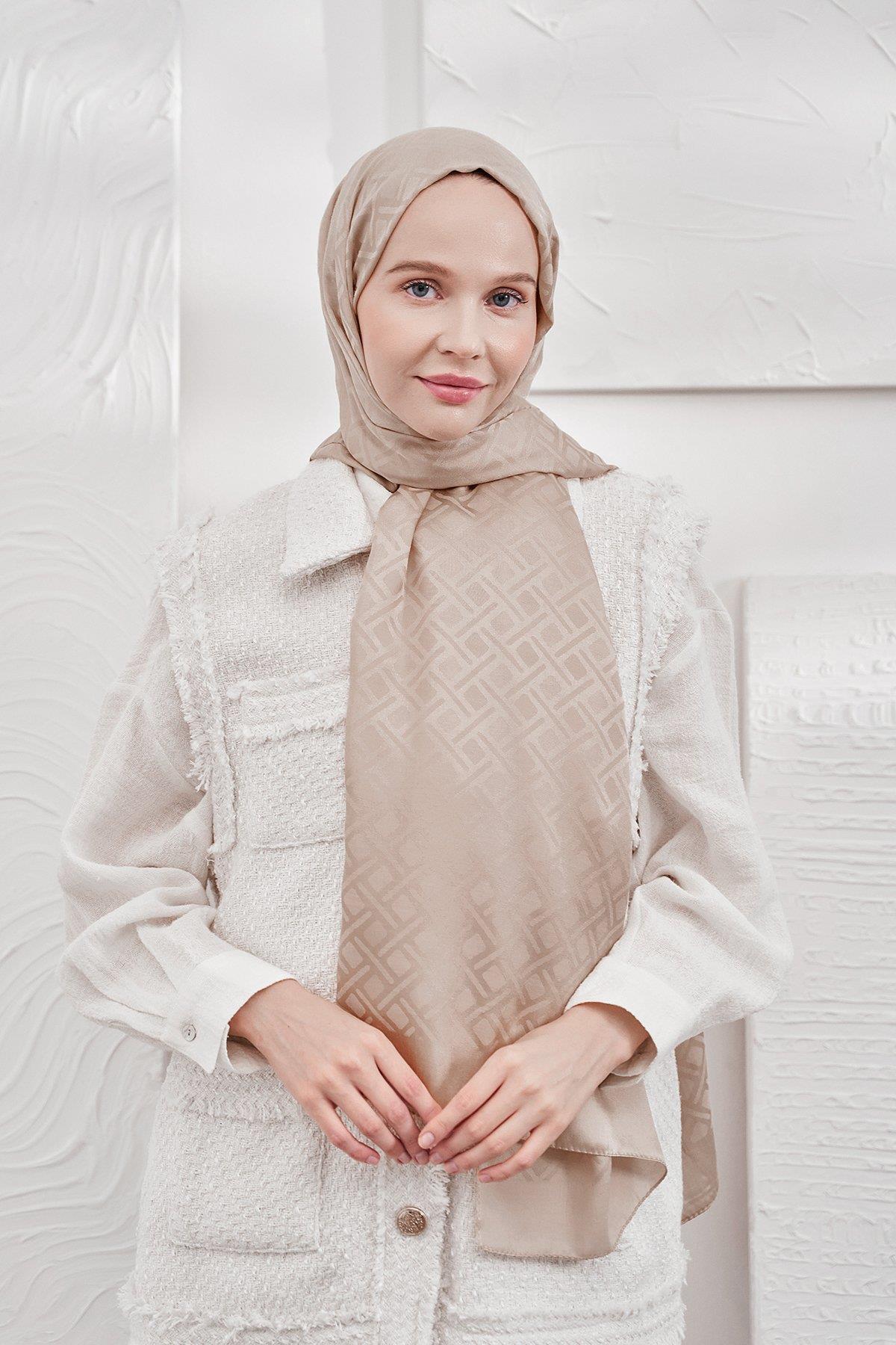 Italyan Jakar Geometrik Desen Şal - Yeni Jakarlı Trend Şal Scarf - Taş Italyan Jakar Geometrik Desen Şal - Yeni Jakarlı Trend Şal Scarf - Taş 3079 70 cm
