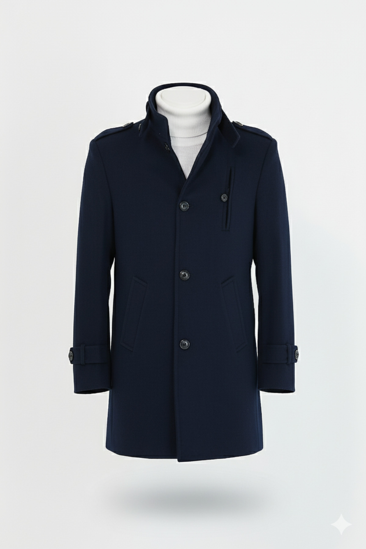 Erkek Siyah Dar Kesim Uzun Kaşe Kaban Erkek Siyah Dar Kesim Uzun Kaşe Kaban MERO-M580 2XL