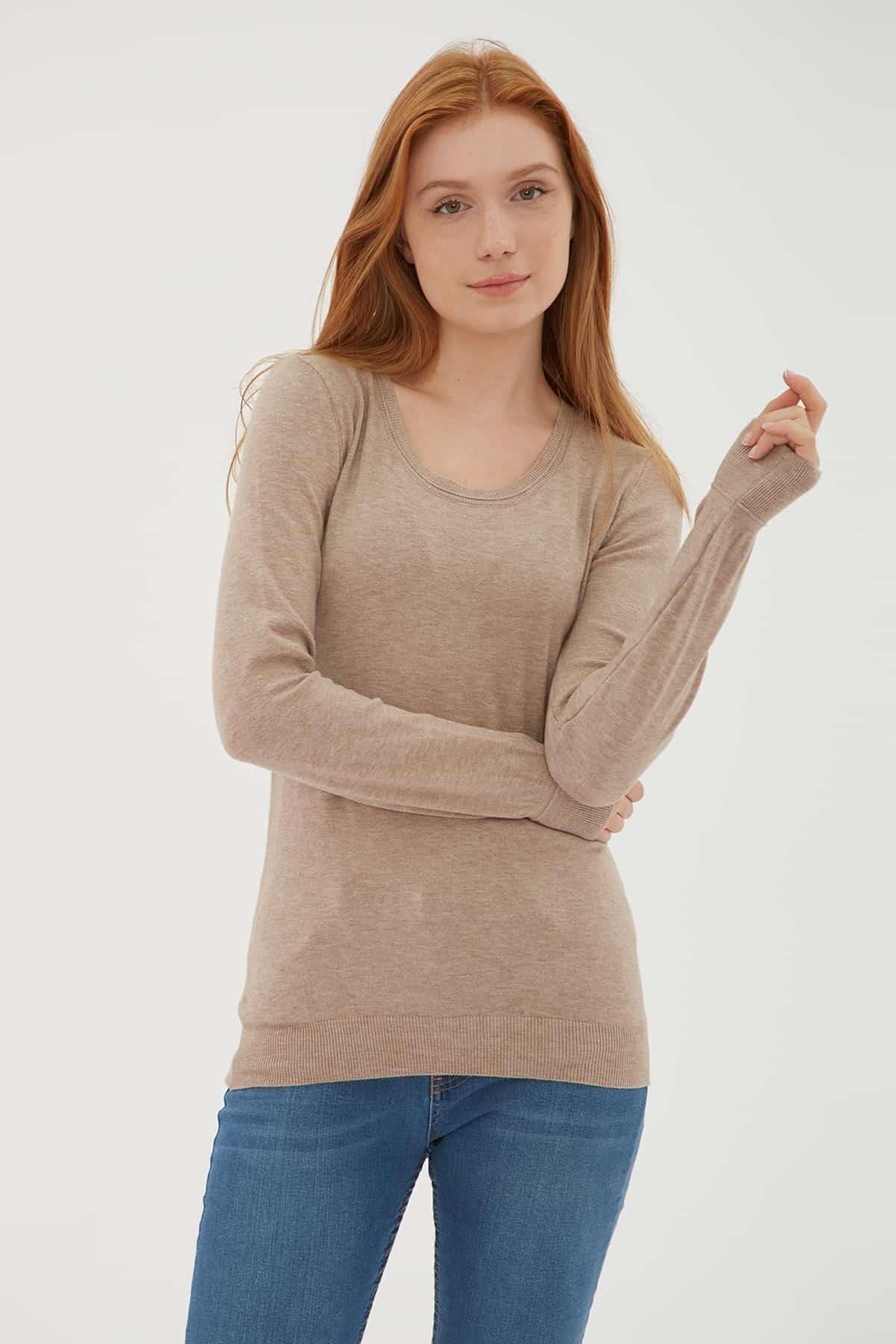 Esnek U Yaka Kazak Vizon Melanj Esnek U Yaka Kazak Vizon Melanj 23K0778K1 3XL