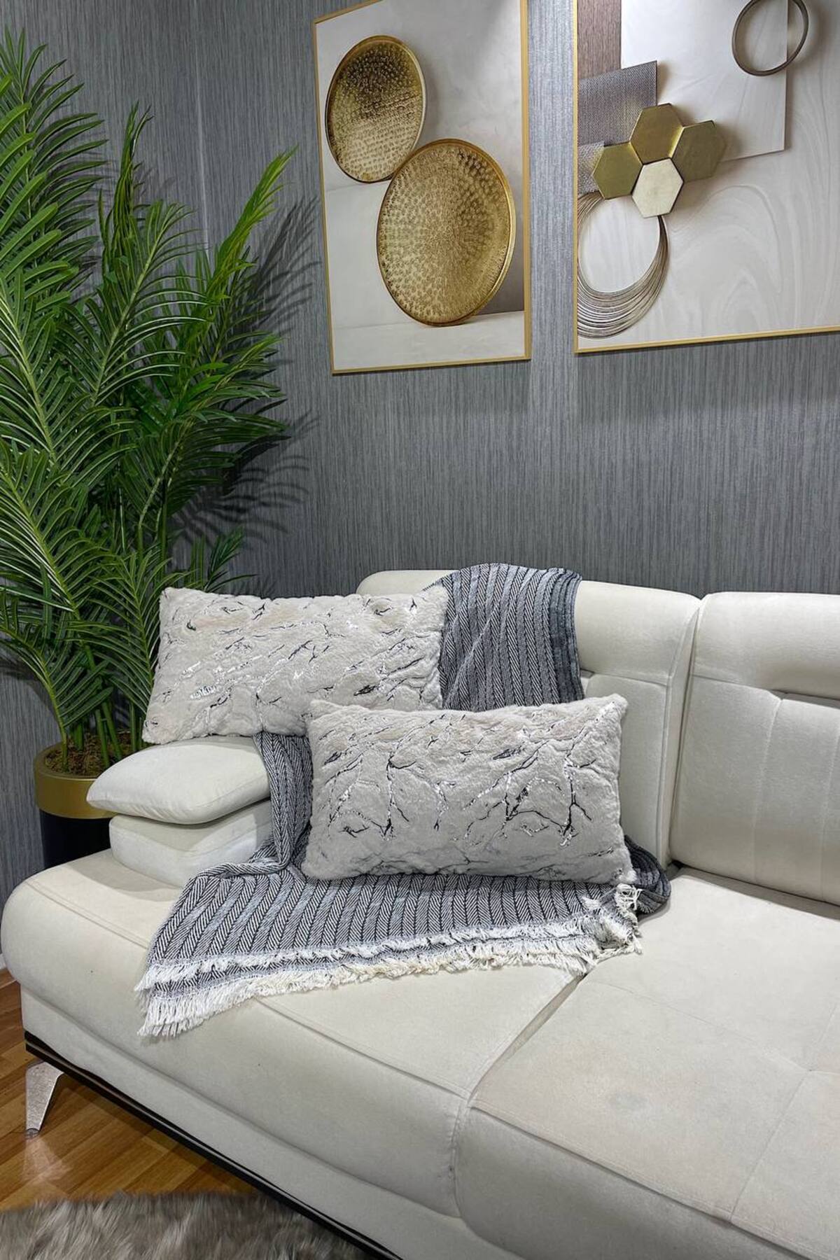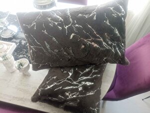 Gümüş Varaklı Pelüş Rabbit Dikdörtgen Kırlent Kılıfı - Antrasit Gümüş Varaklı Pelüş Rabbit Dikdörtgen Kırlent Kılıfı - Antrasit VAR3 30 x 50