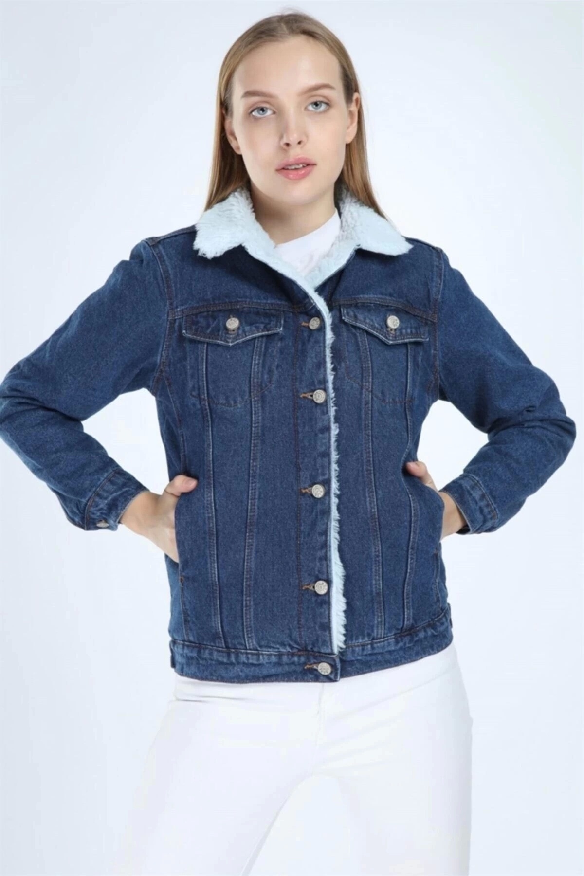 İçi Kürklü Denim Ceket Mavi İçi Kürklü Denim Ceket Mavi 23K0266K1 XL
